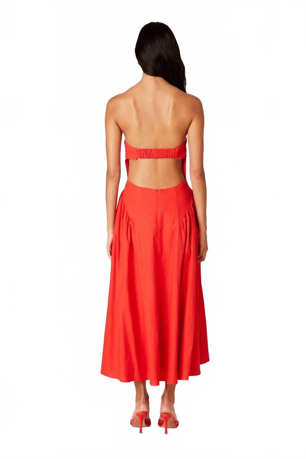 Просто добавьте шлепанцы или мюли, и все готово. Представляем платье Anne Midi от NIA - очаровательное изделие насыщенного вишневого оттенка, воплощение элегантности. Платье без бретелек с заниженной талией, длиной до колена, структурированным лифом и пышной, объемной юбкой придает изящество. Это платье изготовлено из 100% хлопка и имеет уникальную открытую спину, подчеркнутую присборенной бретелькой для комфорта и поддержки. Состав: 100% хлопок. Застежка: надевать. Уход: машинная стирка.