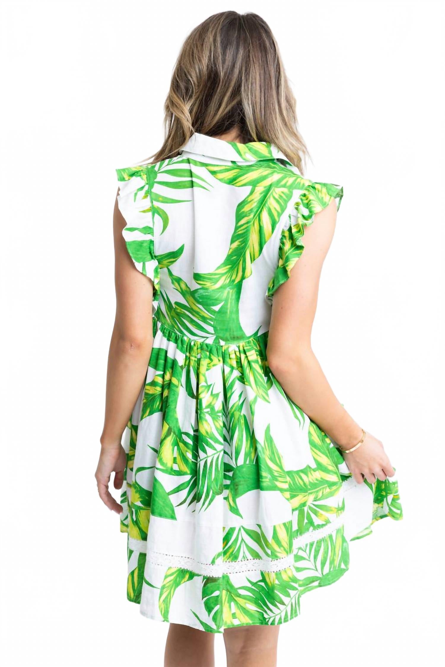 Дополните образ любимыми сандалиями, чтобы создать непринужденный и элегантный образ. Представляем платье Palm Leaf Tier от Karlie - эффектный элемент вашего летнего гардероба в ярко-зеленом цвете. Это женское повседневное платье с цветочным узором и свободным силуэтом с рукавами-крылышками идеально подходит для образа в стиле бохо-шик. Платье с воротником-стойкой и застежкой на пуговицы сочетает в себе стиль и комфорт. Уход: машинная стирка и сушка в стиральной машине для легкого ухода.