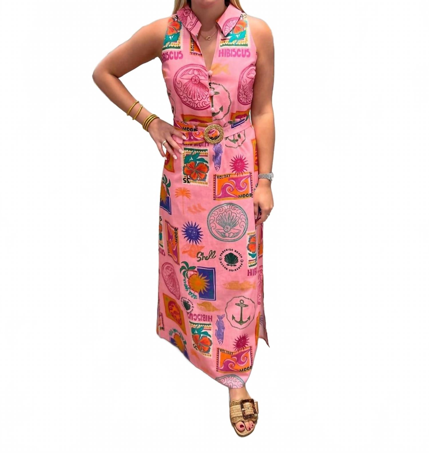 Платье идеальной длины существует. Дополните свой гардероб платьем миди Anna Cate Jill без рукавов - шикарным выбором для любого случая. Это платье А-силуэта с узором, выполненное в восхитительном розовом оттенке, дополнено саморегулирующимся поясом, который элегантно подчеркивает талию. Застежка на пуговицы и классический воротник-стойка делают его идеальным как для весенних праздников, так и для офисного стиля. С легкостью воплощайте максималистский тренд с этим универсальным изделием.