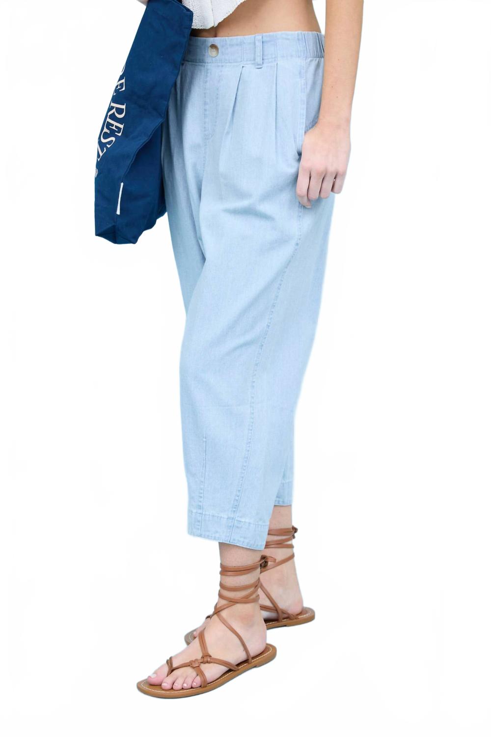 High Waist Pleated Denim Capri Pants In Chambray Blu Pepper, Chambray 5 922₽