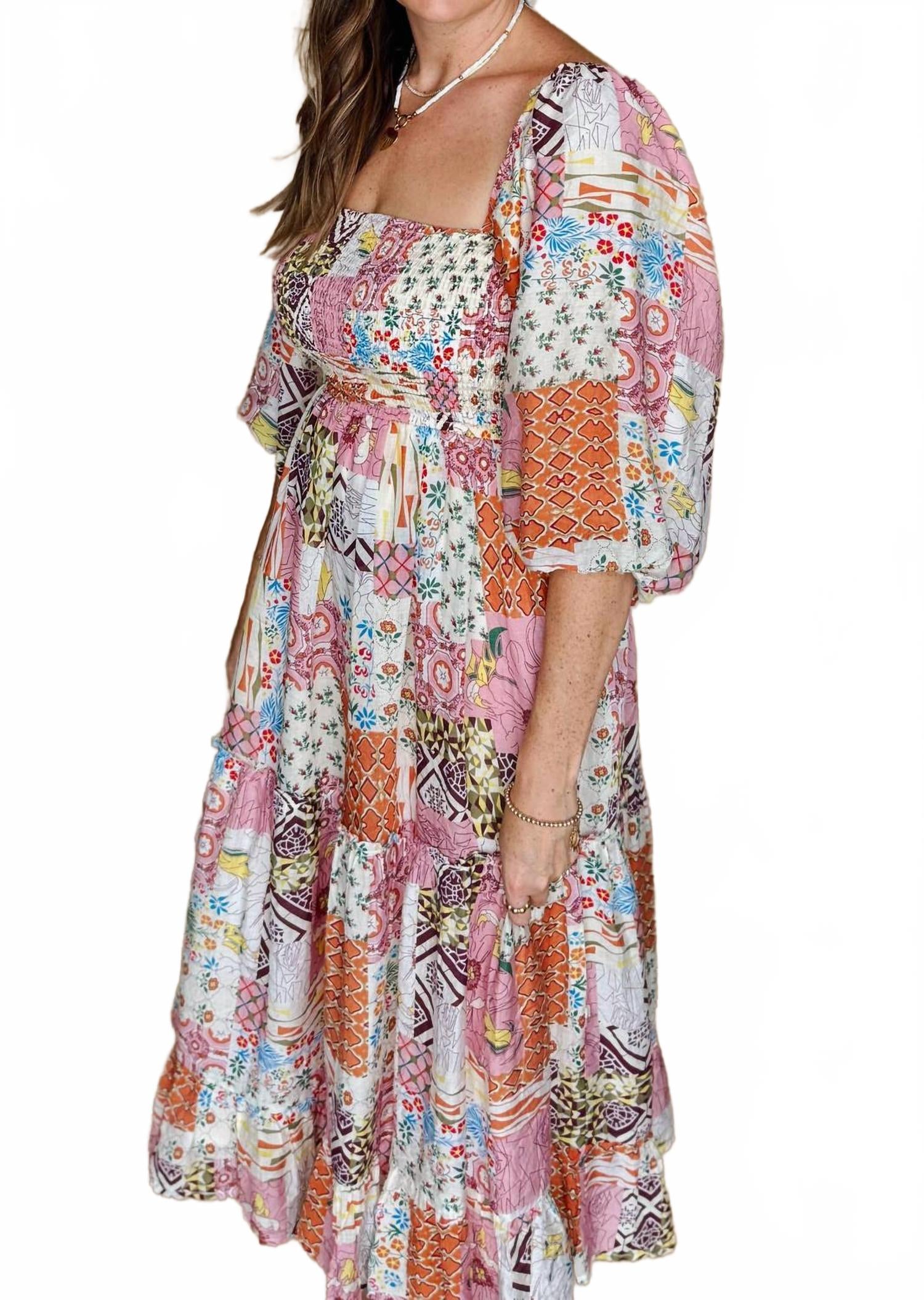 Многоцветное платье миди в стиле пэчворк FATE, мультиколор
