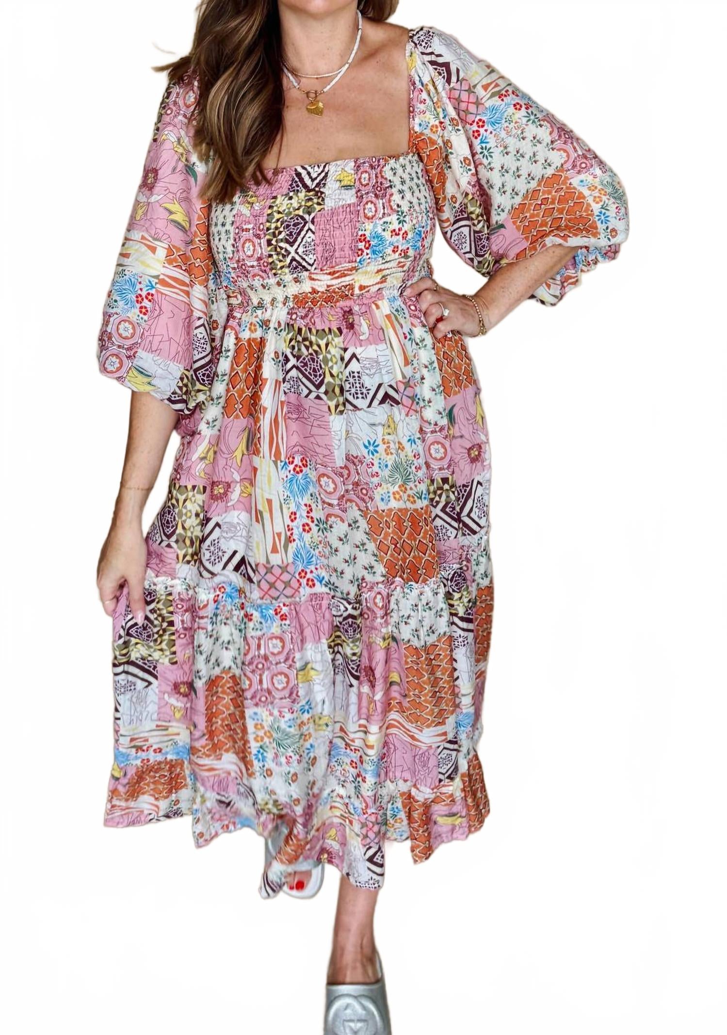 Платье миди настолько универсально, что варианты его ношения безграничны. Окунитесь в игривую элегантность с платьем миди Afterglow Patchwork от Fate, созданным для тех, кто любит выделяться. Это восхитительное платье с рукавами три четверти и очаровательным квадратным вырезом выполнено из 70% вискозы и 30% нейлона для комфортной посадки. Это платье без застежек - идеальный выбор для весенних дней. Для оптимального ухода стирайте вручную в холодной воде и сушите на веревке или вешалке.