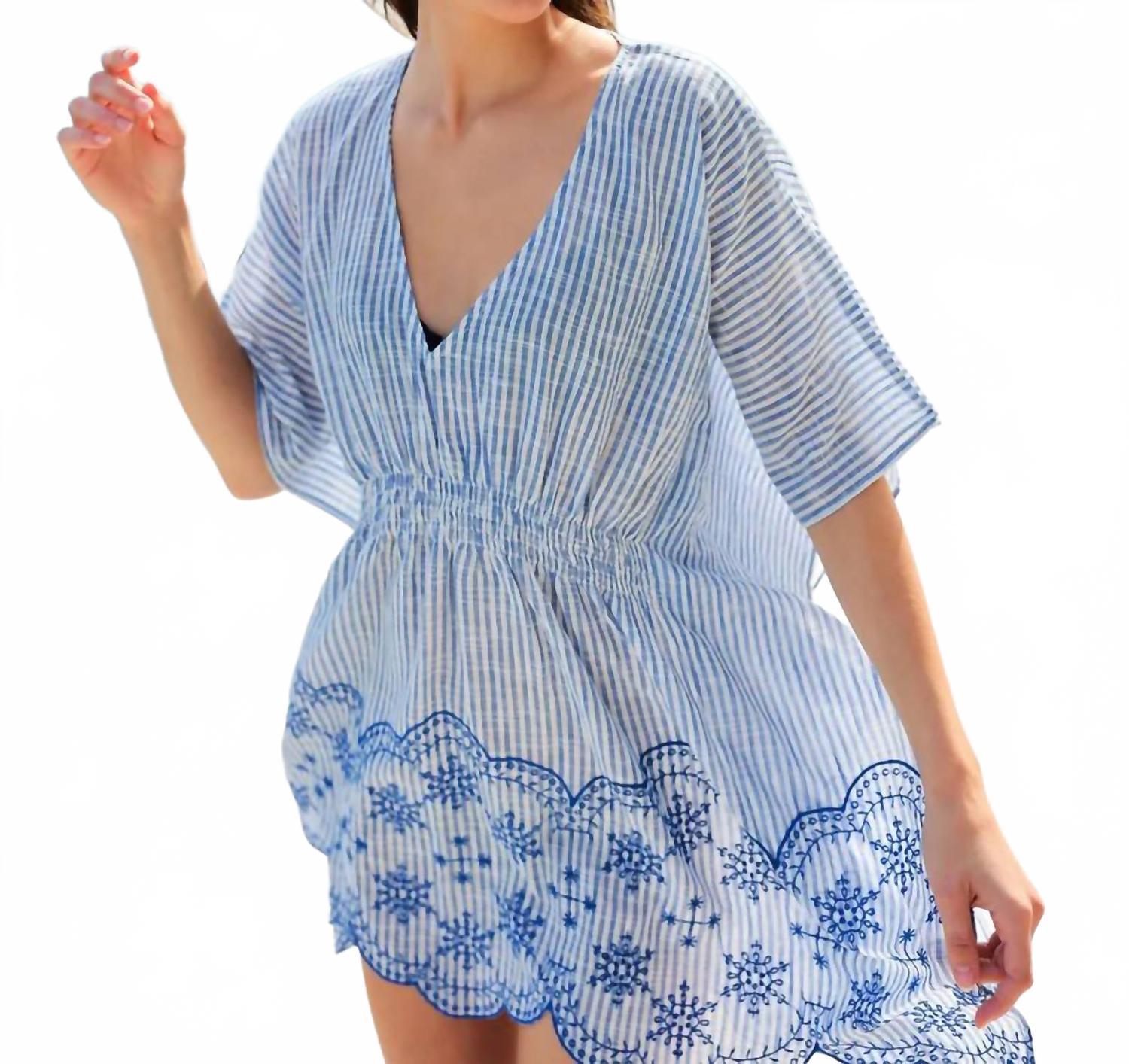 Идеальный наряд для вечеринок у бассейна, пляжных дней и долгих выходных. Хлопок; машинная стирка, сушка в стиральной машине при низких температурах. Накидка Laura Cover-Up - воплощение воздушной элегантности благодаря изящным бело-голубым полоскам и изысканной вышивке по подолу. Эта легкая накидка с присборенной талией и струящимися рукавами-кимоно легко переносится с пляжа на бранч. Фестончатые края и воздушная ткань добавляют игривости этому незаменимому летнему предмету гардероба.