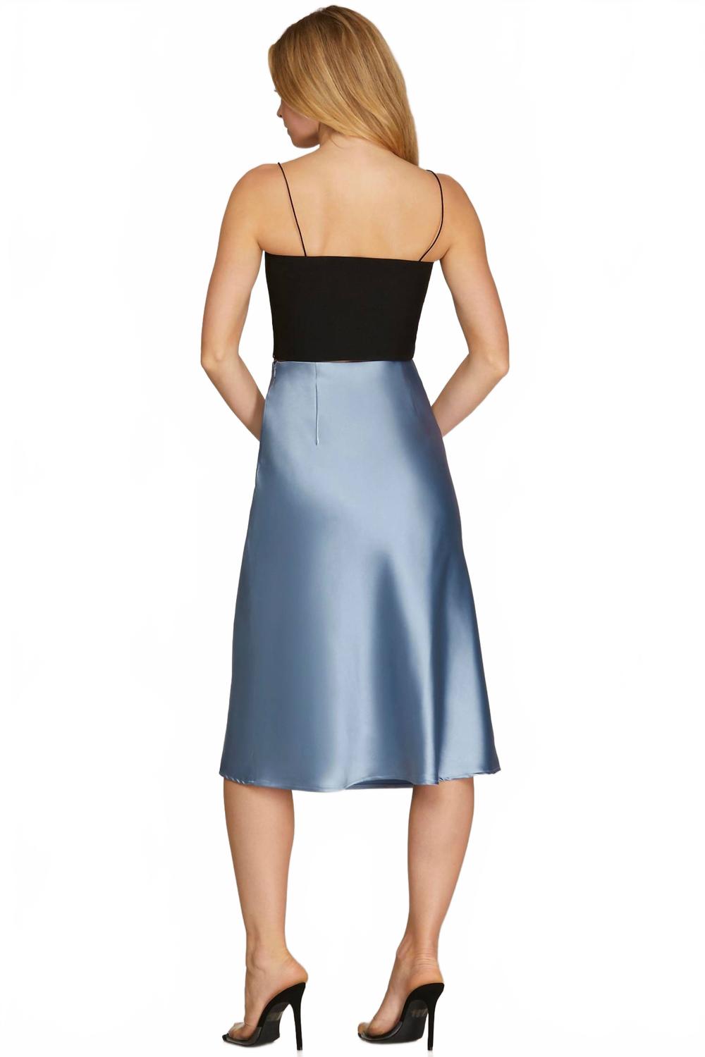 Дополните свой сезонный гардероб юбкой-миди Georgina от SHE + SKY - потрясающей моделью классического пыльно-синего цвета. Эта юбка с однотонным узором выполнена из 100% роскошного полиэстера, что обеспечивает красивую драпировку и идеально подходит для праздничных вечеринок или элегантных встреч. Застежка-молния сбоку обеспечивает идеальную посадку и классический стиль. Уход: ручная стирка и сушка на веревке.