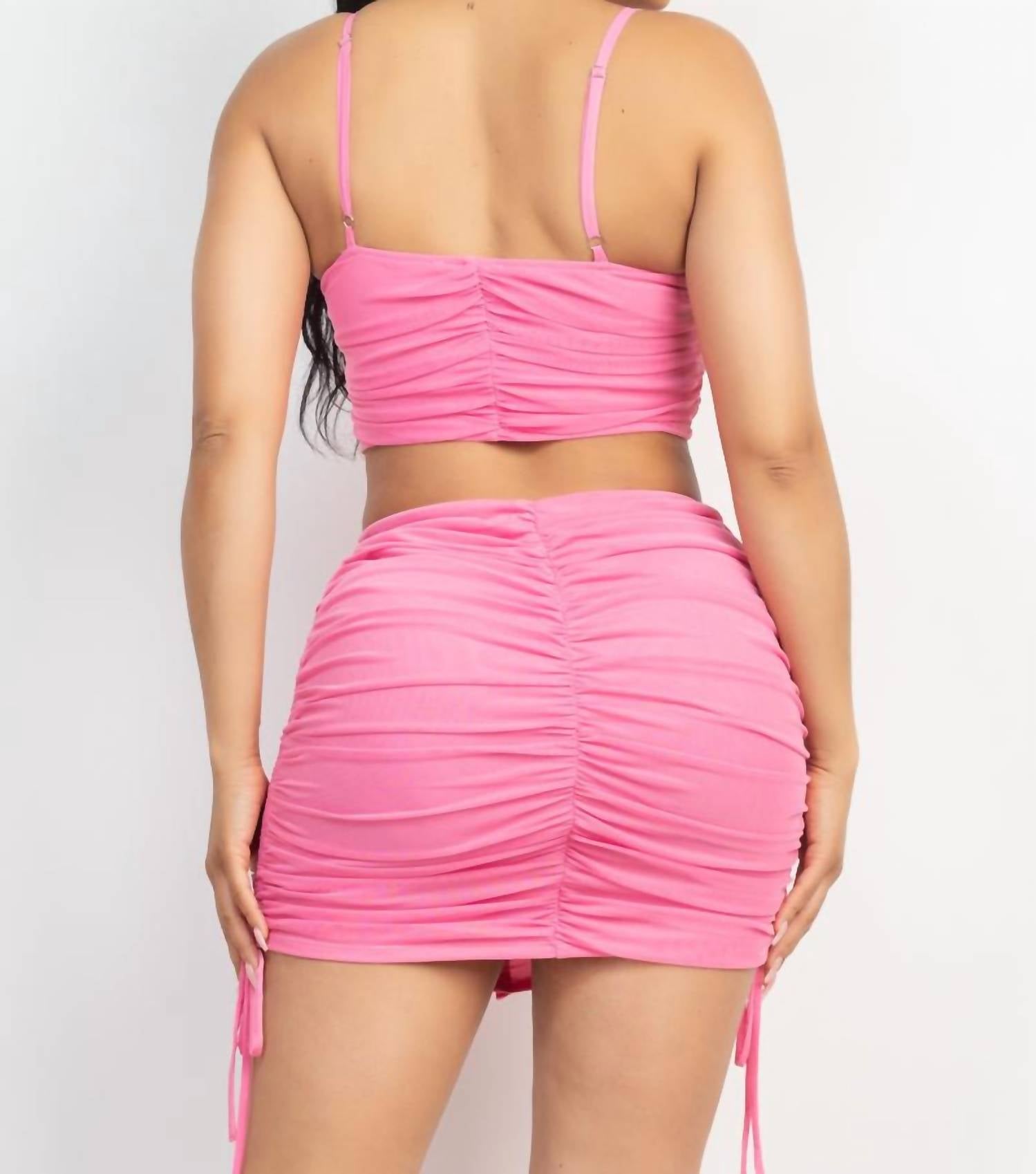 Представляем комплект юбки и топа Krystal от Shop Iris Basic элегантного оттенка, который идеально дополнит ваш гардероб. Этот женский комплект включает мини-юбку с завязками по бокам, что позволяет создавать рюши и регулировать длину. Комплект выполнен из однотонного материала и застегивается на крючок, обеспечивая одновременно стиль и функциональность. Этот комплект без карманов требует бережного ухода, чтобы сохранить эффектную отделку из тюля.