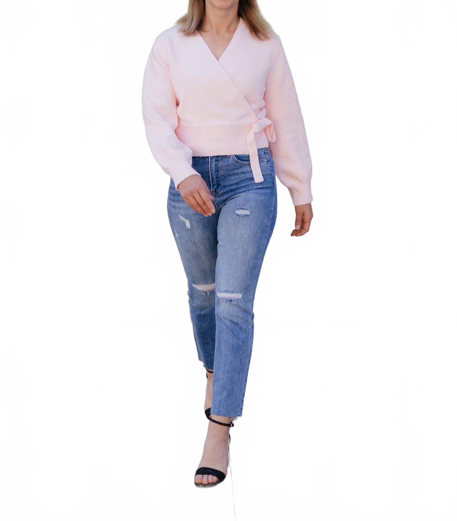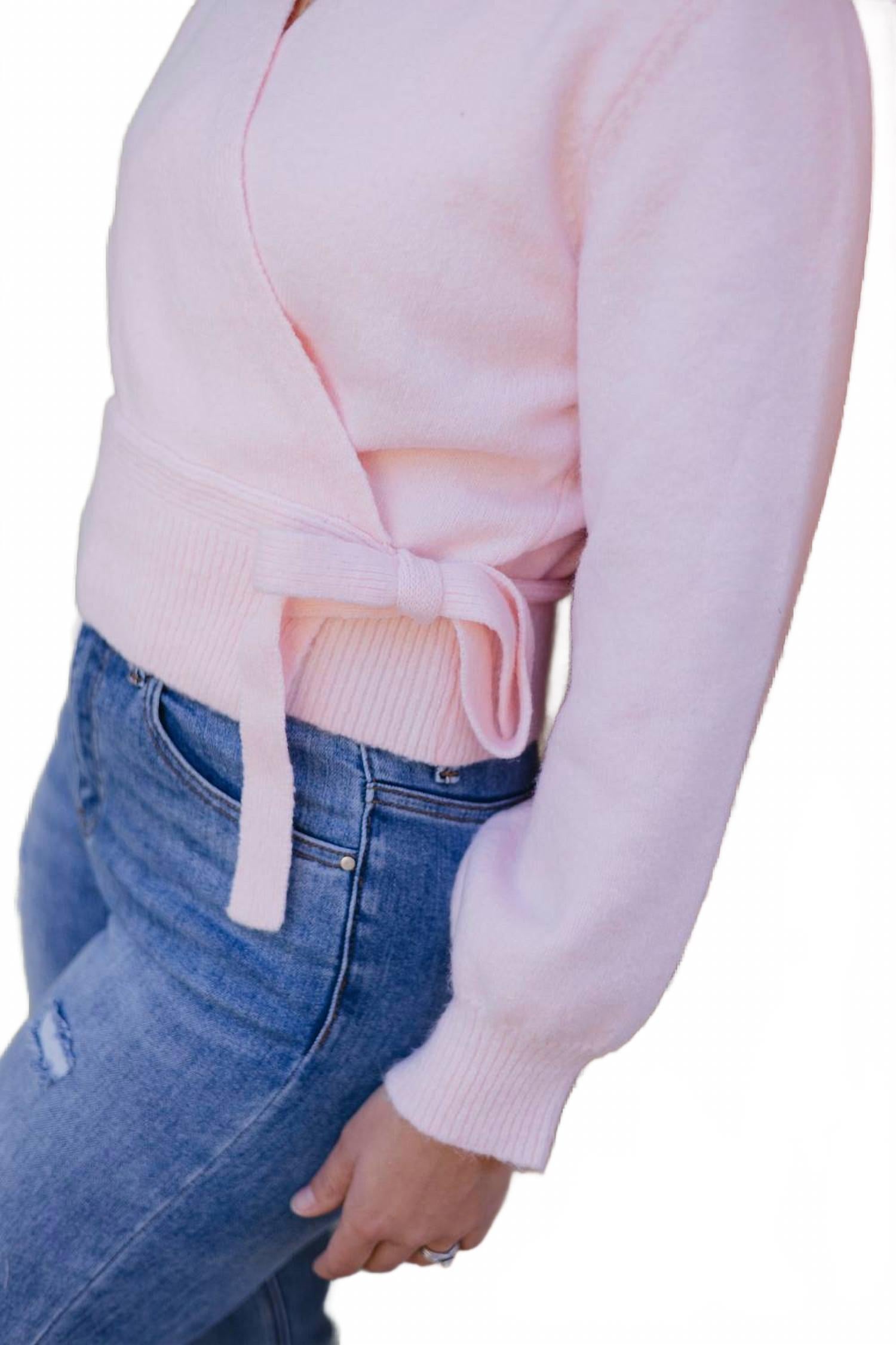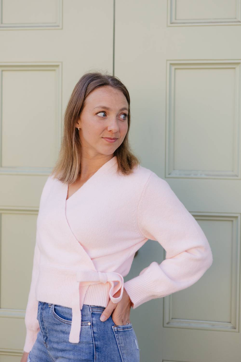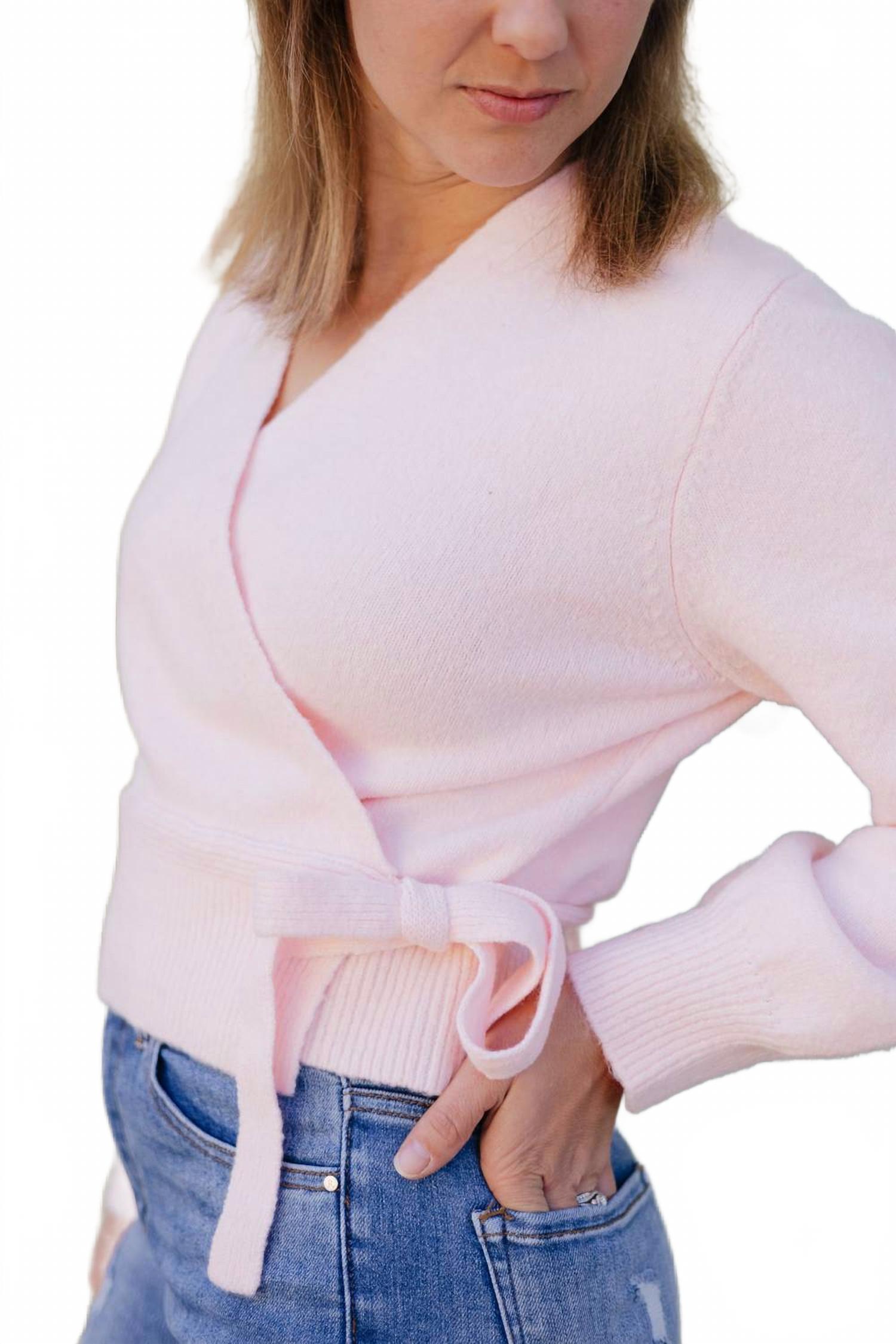Встречайте свитер-халат Carnation от Aaron & Amber - шикарный преппи-стиль, идеально подходящий для званого ужина или Дня святого Валентина. Этот розовый свитер с V-образным вырезом, элегантными длинными рукавами-фонариками и эффектным бантом сбоку создает изящный силуэт. Изготовленный из хлопка, он идеально подходит для весенних случаев. Застежка: завязка. На Джесси размер S.