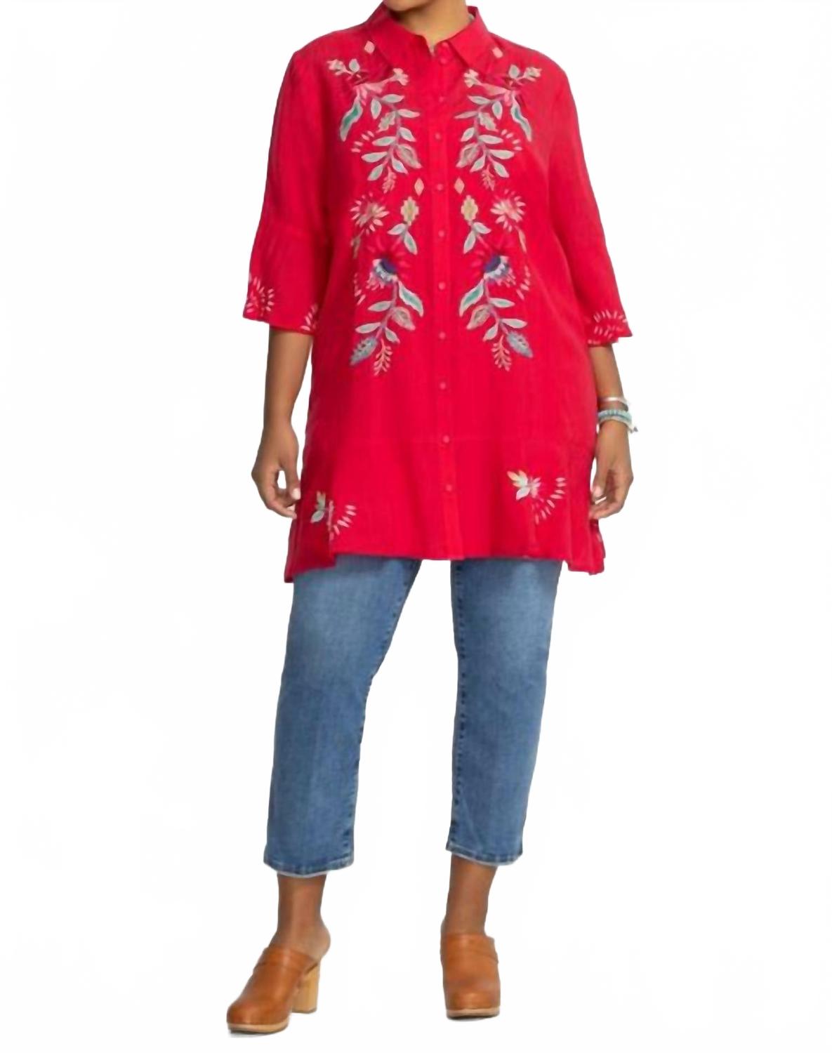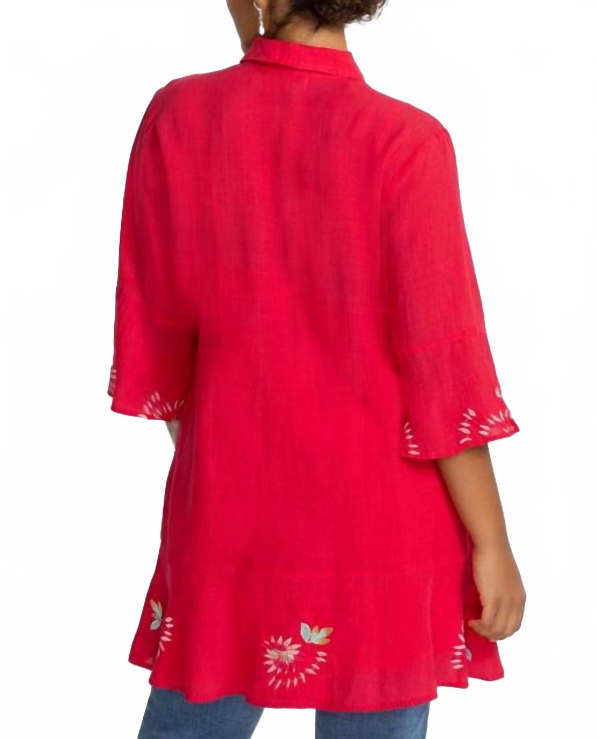 Платье с многоярусными воланами сочетает в себе яркие вышитые цветочные детали и непринужденный комфорт. Это платье с лифом-комбинацией, изготовленное из 100% легкой рами, застегивается на пуговицы спереди, имеет оборки на рукавах и оборку по низу, которая добавляет текстуру и движение. Струящийся силуэт и яркие акценты делают его очаровательным выбором для создания повседневного элегантного образа.