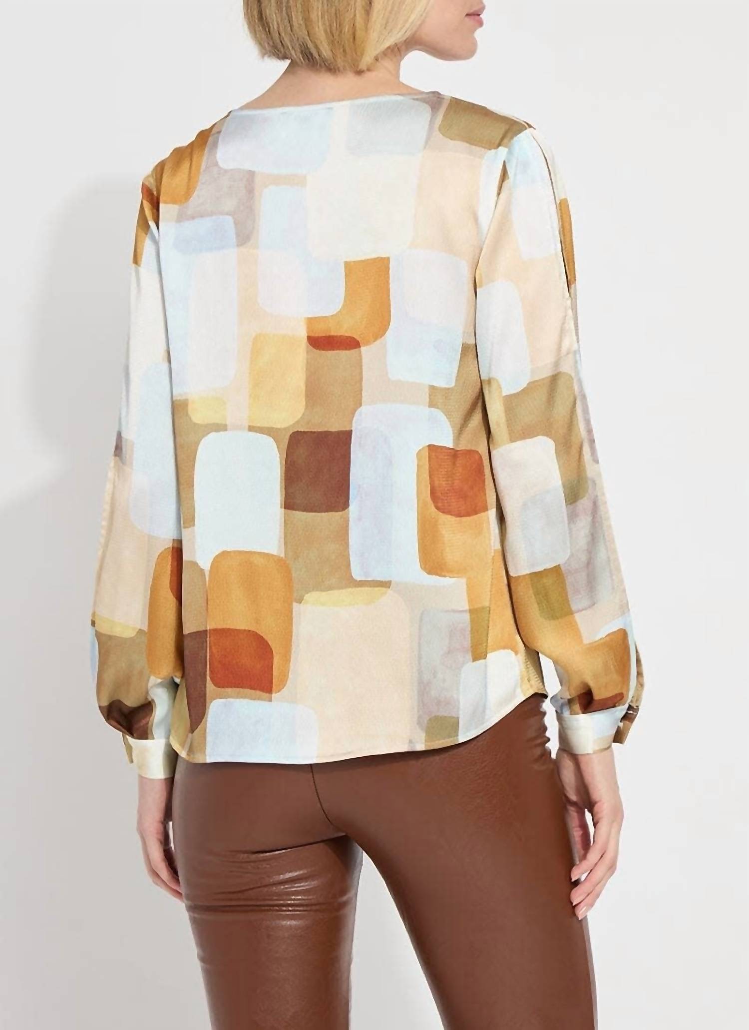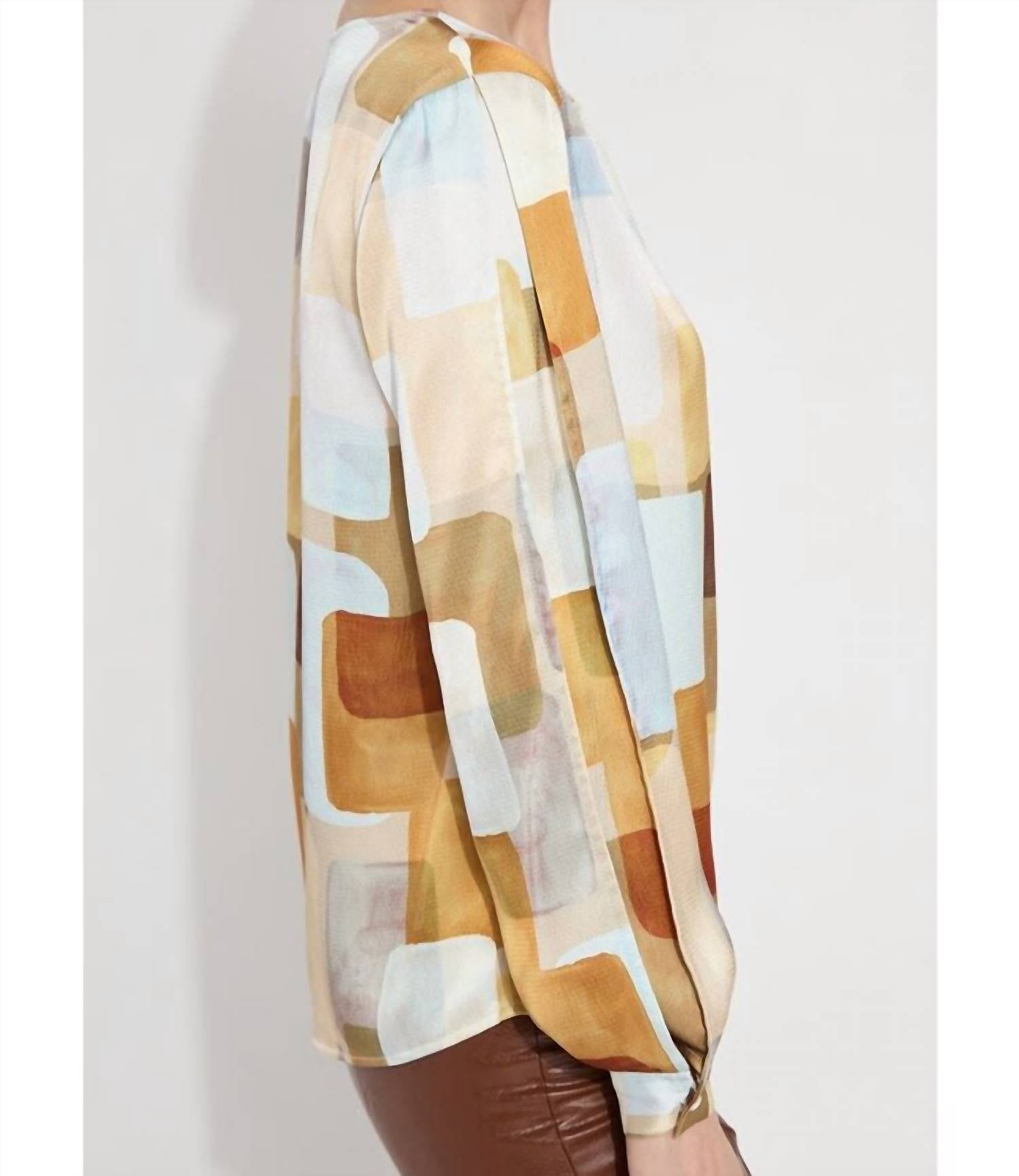 Блузка Marie от Lysse - изысканный выбор для любого случая: геометрический узор в сочетании с минималистичным оттенком. Эта блузка с длинными рукавами, круглым вырезом и застежкой на липучке идеально подходит для церковных встреч или Дня благодарения. Изготовлена из кованого шелка (98% полиэстер, 2% спандекс), воплощающего легкое очарование осени. Рекомендации по уходу включают машинную стирку для сохранения элегантности.