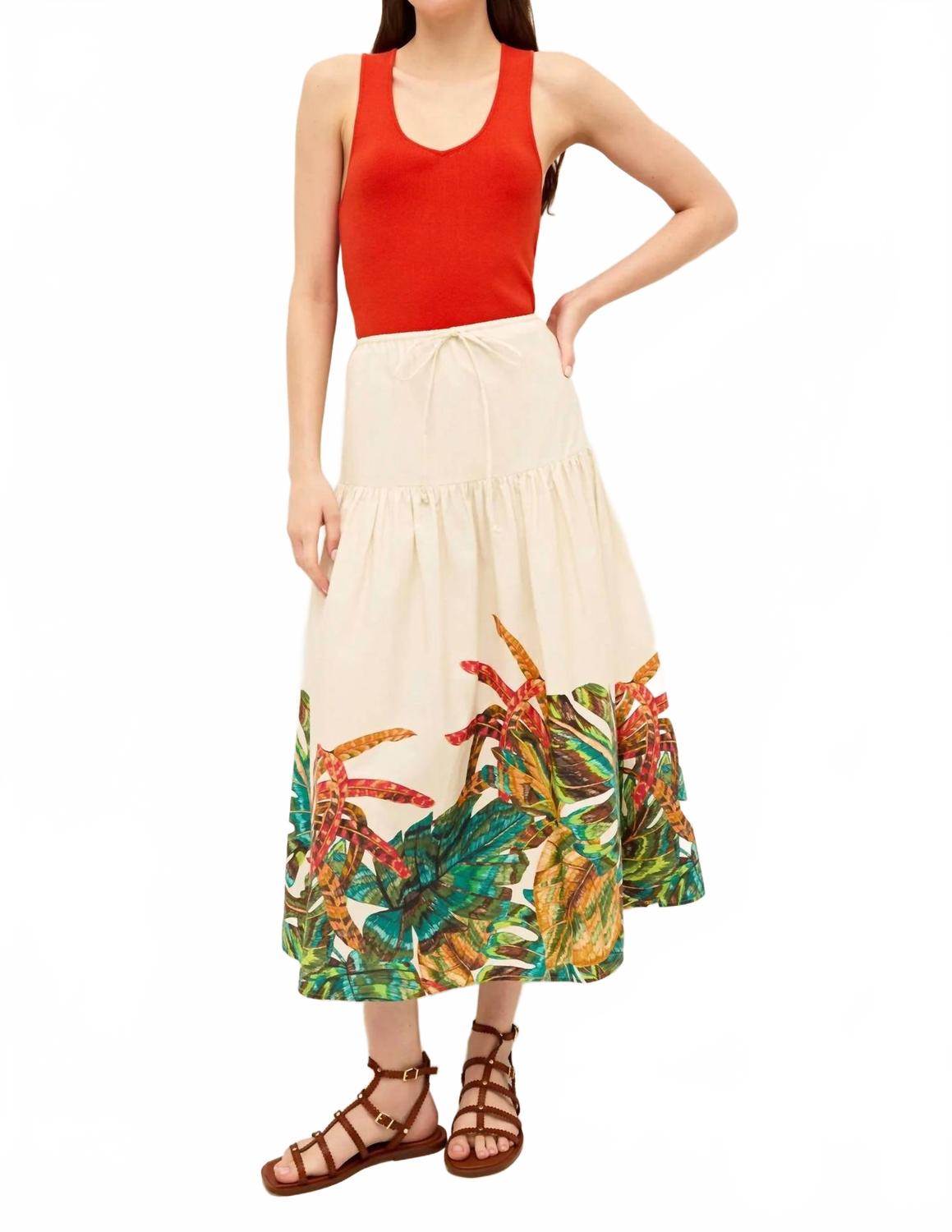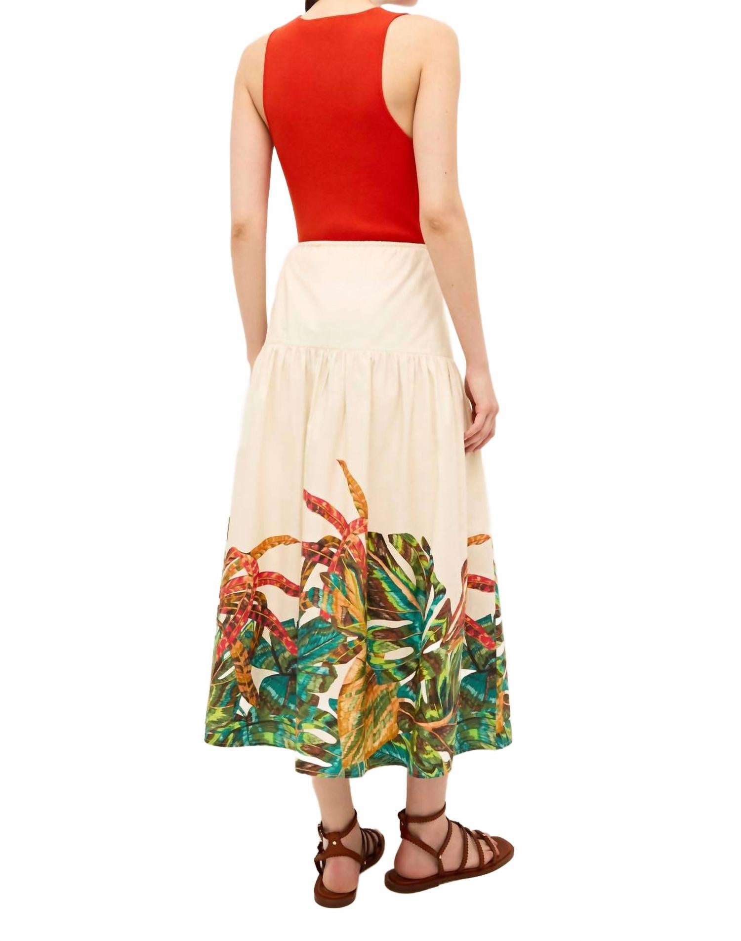 Встречайте юбку Louise Midi от Marie Oliver - незаменимый аксессуар для летних путешествий. Эта юбка миди из 100% хлопка обеспечивает легкость и комфорт. Юбка украшена очаровательным принтом в стиле джунглей по подолу и заниженной талией. Эластичный пояс с кулиской обеспечивает комфортную посадку на уровне талии. Уход: бережная машинная стирка и сушка на веревке, чтобы сохранить ее очарование в стиле бохо-шик.