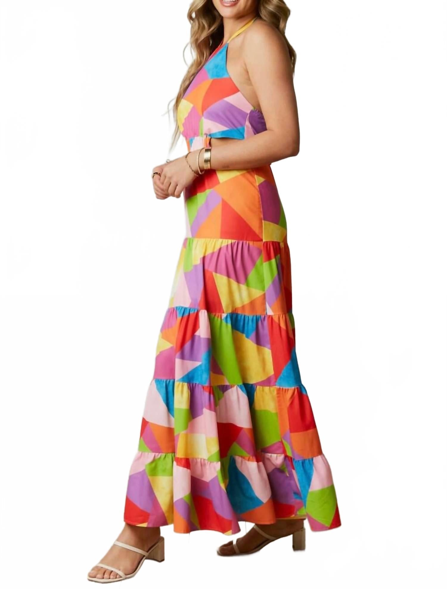 Представляем макси-платье Camila от Peach Love - эффектное и эффектное изделие в красочном дизайне колор-блок. Это платье без рукавов с американской проймой и боковым вырезом, подчеркивающим его уникальный стиль. Платье изготовлено из 100% полиэстера с подкладкой (90% полиэстер, 10% спандекс). Платье отличается непринужденным стилем и многоуровневым оборкой по низу. Завязывается на завязку. Можно стирать в стиральной машине.