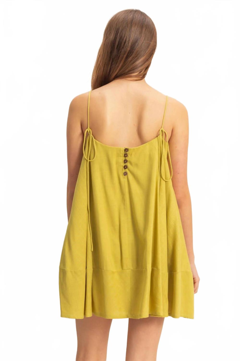 Удобное и милое, это повседневное платье сочетает в себе все необходимое. Дополните свой летний гардероб мини-платьем Hollie от Azalea - идеальным выбором в потрясающем оттенке «матча». Это минималистичное платье-трапеция с тонкими бретельками-спагетти и многоуровневым квадратным вырезом создает современный, привлекательный образ. Очаровательный завязочный шнурок и застежка на пуговицы сделают его стильным и удобным в отпуске. Однотонный крой идеально подходит для повседневной носки.