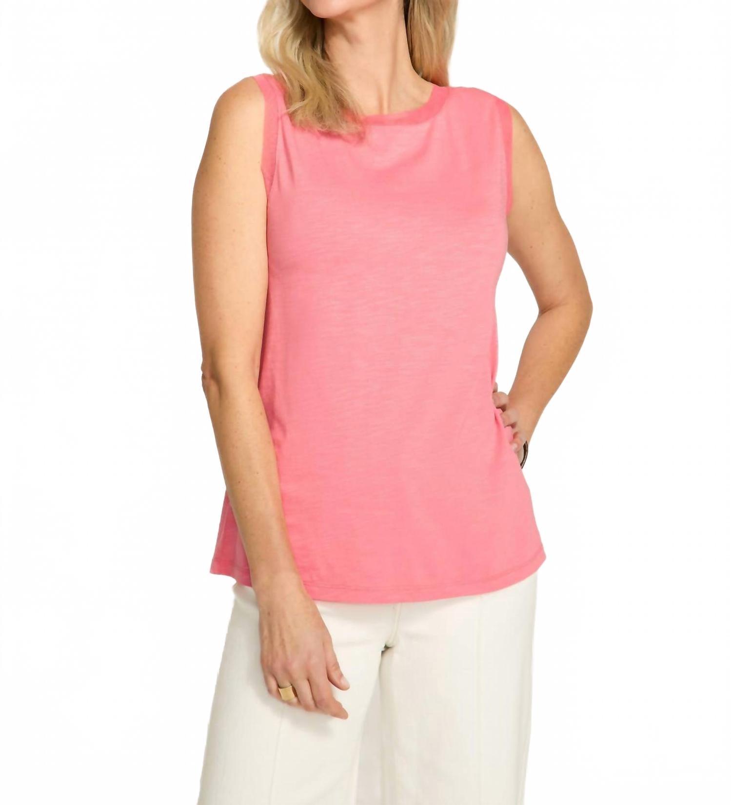 Заправьте эту майку в любимые джинсы, чтобы создать непринужденный, но элегантный образ. Представляем майку FDJ Boat Neck Camisole яркого кораллового цвета - шикарное дополнение к вашему летнему гардеробу. Этот топ без рукавов с круглым вырезом выполнен из комфортной смеси 60% хлопка и 40% модала. Модель с однотонным узором имеет удобную застежку и идеально подходит для праздничных вечеринок или неформальных прогулок. Для удобства ухода достаточно машинной стирки и сушки на веревке.