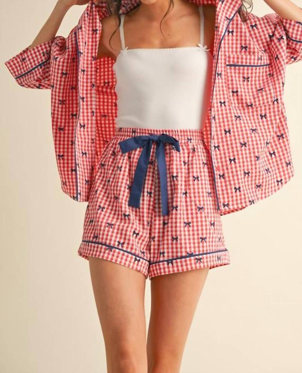 Идеальная вещь для отдыха, сна и приготовления завтрака. Дополните свою коллекцию домашней одежды пижамой You Pajamas от AnnieWear, выполненной в шикарной красной клетчатой ​​ткани. Эта пижама с рукавами три четверти и стильным воротником идеально подходит для создания изысканного образа дома. Изготовленная из ткани сирсакер, она дышащая и обеспечивает комфортную посадку в течение всего дня. Идеально подходит для женщин, которые ценят одновременно моду и комфорт в одежде для отдыха.