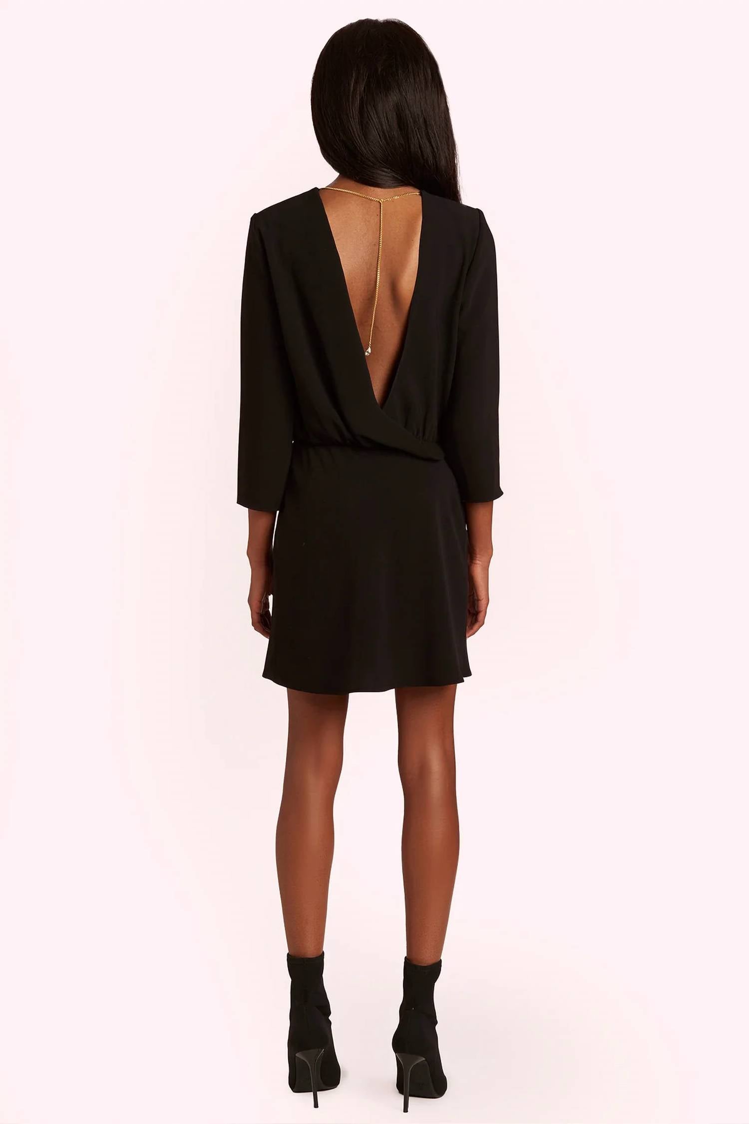 Свободное и элегантное платье, которое вы будете носить круглый год. Представляем платье Phebes от Аманды Апричард - эффектное мини-платье элегантного черного цвета. Стильный облегающий силуэт отличается длинными рукавами, шикарным круглым вырезом и смелой открытой спиной, украшенной цепочкой. Изготовленное из прочного полиэстера, это платье станет ярким акцентом в любой обстановке. Идеально подходит для вечернего выхода или особого случая, сочетая в себе элегантность и очарование.