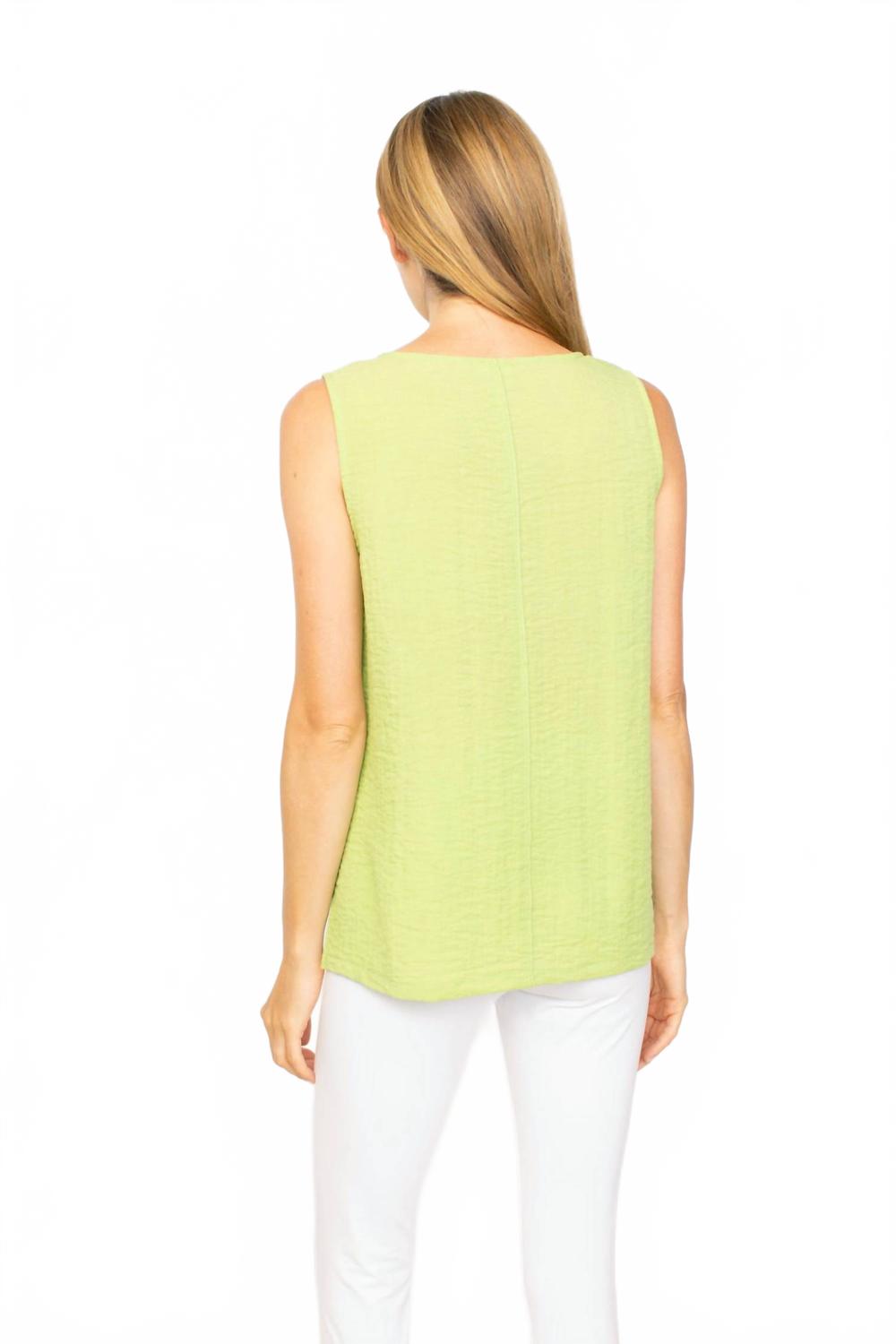 Этот топ без рукавов с удобным круглым вырезом выполнен из смеси вискозы (75% и нейлона (25%)) с легким фактурным эффектом жатости, создающим уникальный образ. Длина изделия составляет 27 дюймов (68 см), что обеспечивает удобную посадку и подходит для ношения бюстгальтера. Благодаря удобному крою, за ним легко ухаживать: машинная стирка на щадящем режиме и сушка в стиральной машине при низкой температуре.