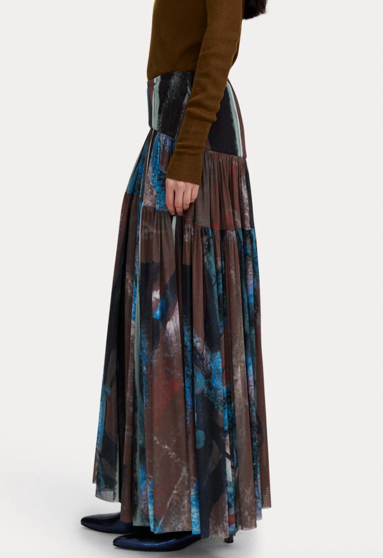 Кто не любит хорошую макси-юбку? Подчеркните свой стиль с макси-юбкой Flock от Rachel Comey, идеально сочетающей в себе романтичность и универсальность. Эта юбка с струящейся сеткой и многоуровневым кроем с абстрактным принтом в виде кистей добавит нотку бохо-шика вашим летним ужинам. Эта модель с узором, изготовленная из 100% полиэстера, имеет застежку-молнию для надежной посадки. Идеально подходит для званого ужина, так как не имеет карманов, что обеспечивает элегантный силуэт.
