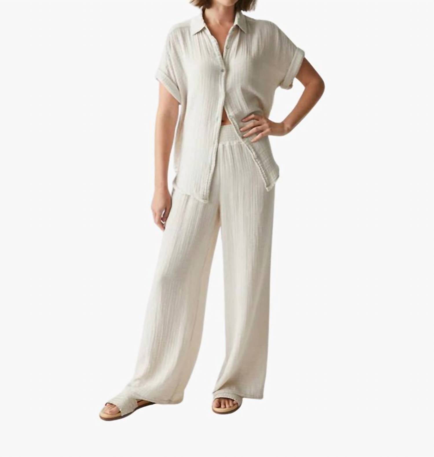 Откройте для себя брюки Susie Gauze от Michael Stars, которые сочетают в себе стиль и комфорт. Эти брюки с высокой талией и широкими штанинами имеют внутренний шов длиной 76 см для идеальной посадки. Изготовленные из 100% хлопковой двойной марли, они текстурированные, легкие и дышащие, с застежкой-липучкой для удобства надевания. Эти брюки, произведенные в США, идеально подходят для весны и стираются в стиральной машине в деликатном режиме с отжимом при низкой температуре.
