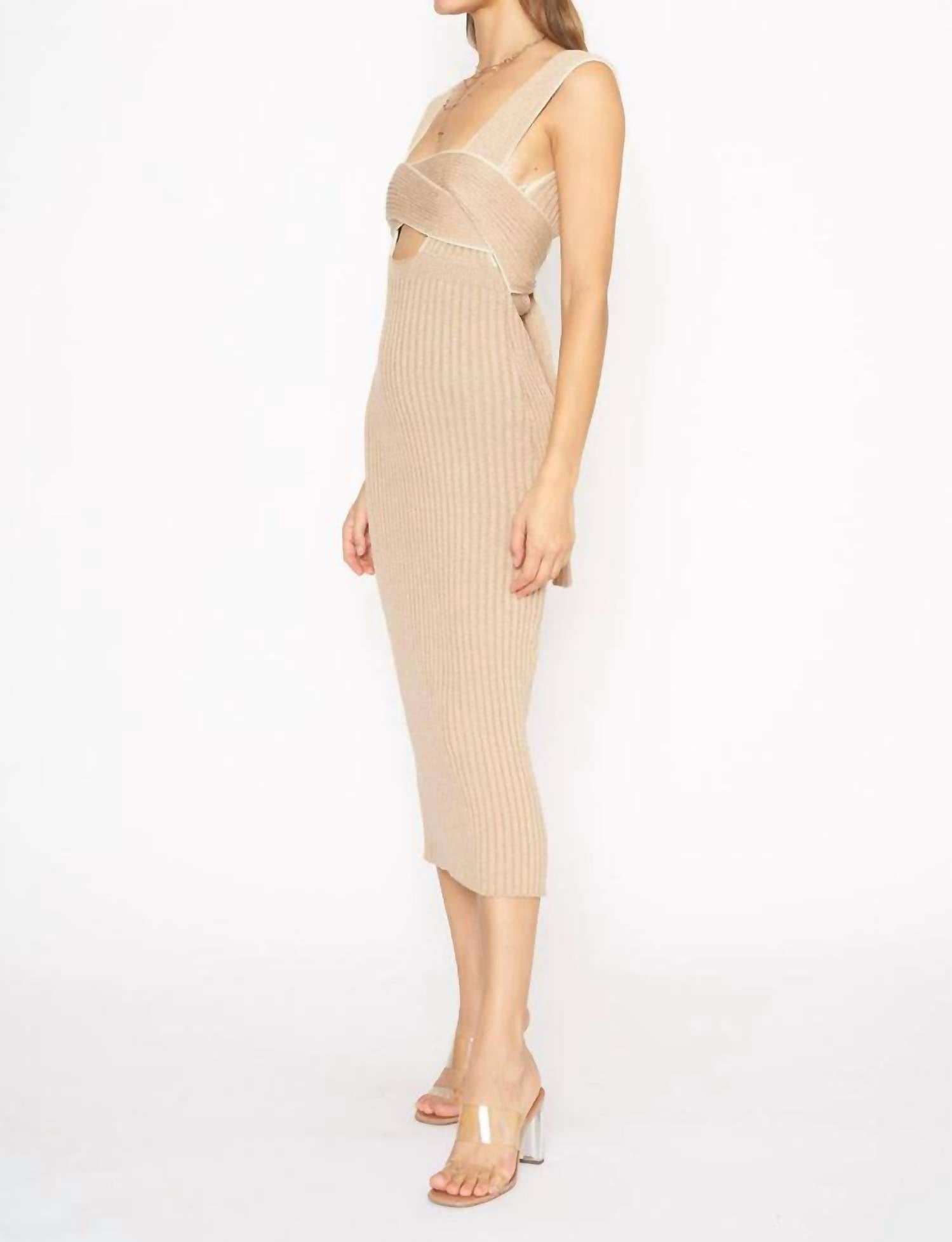 Представляем платье Athena от 4SI3NNA - шикарный и изысканный выбор для любого случая. Это фактурное платье без рукавов выполнено из 60% акрила и 40% хлопка, обеспечивая мягкость и комфорт при носке. Облегающий силуэт дополнен уникальным перекрещивающимся лифом, глубоким вырезом на спине и завязкой. Инструкции по уходу: ручная стирка в холодной воде и сушка на веревке для сохранения элегантного вида.