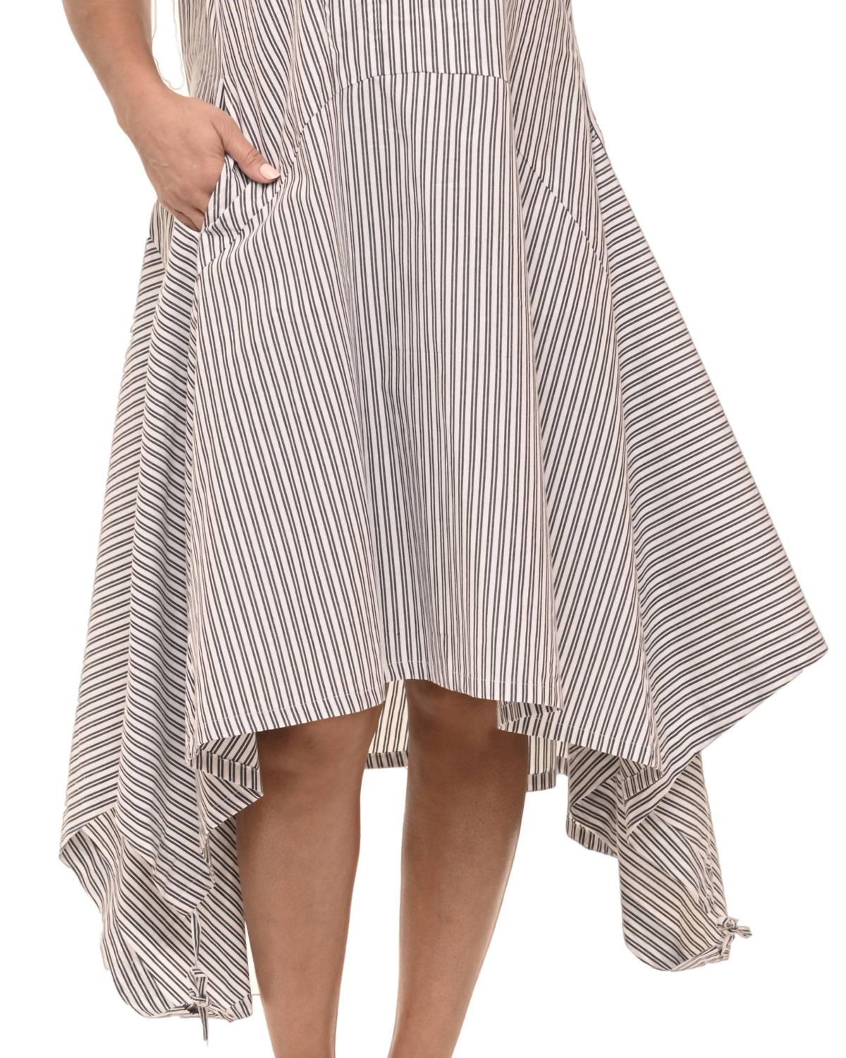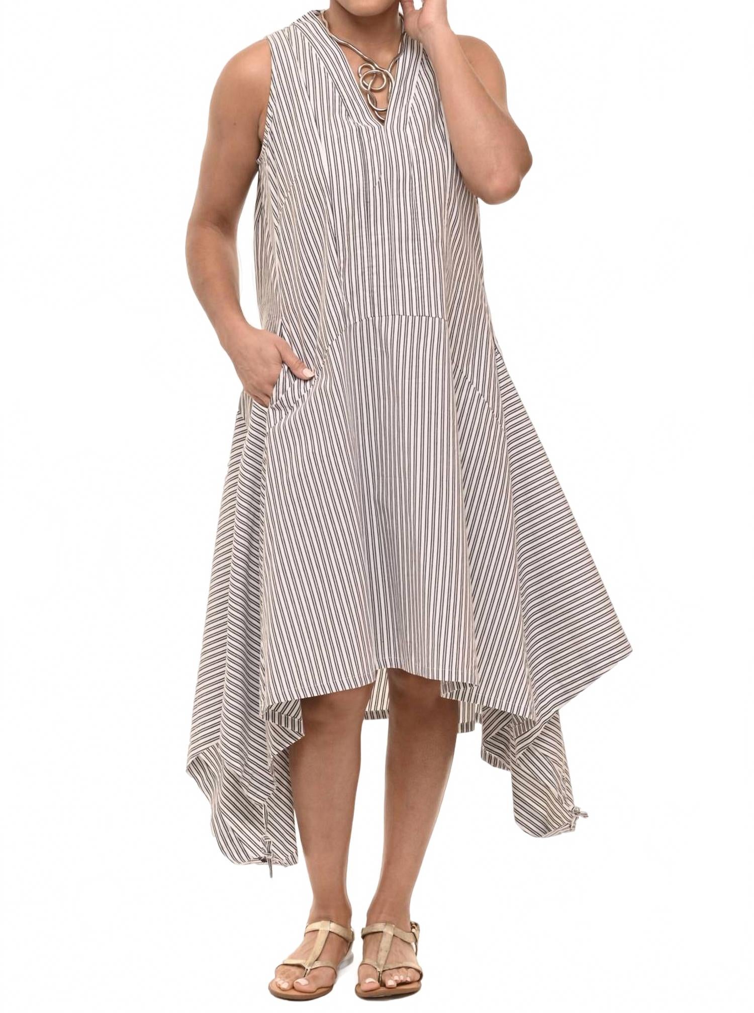 Представляем платье Ellis от Tulip Clothing - шикарную вещь, идеально подходящую для праздничных вечеринок и весенних мероприятий. Это платье миди без рукавов А-силуэта со стильным V-образным вырезом, эффектными белыми и черными полосками и практичными карманами. Платье изготовлено из 100% хлопка для комфорта и удобно надевается без застежек. Длина от XS 43" до XL 45", обхват груди от XS 38" до XL 46". На модели размер S в полоску Wells.