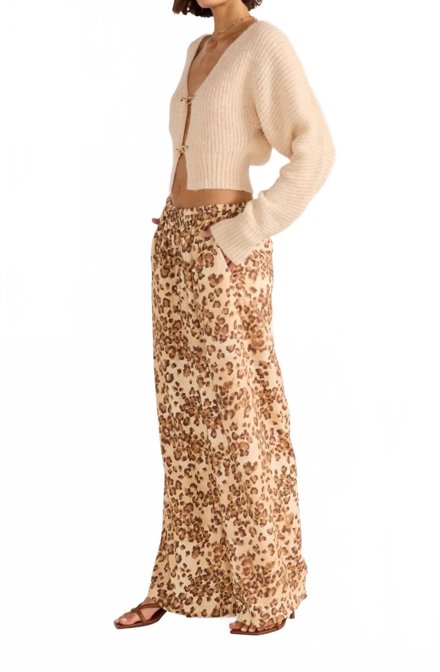 Ощутите игривый стиль с брюками Arden Drawstring Pant от MINKPINK, выполненными в нежном леопардовом принте, который подчеркнет вашу дикую натуру. Свободный силуэт и широкие штанины позволяют носить их как высоко, так и низко на бедрах. Благодаря практичным карманам в боковых швах эта модель идеально подходит для отпуска или весенних прогулок. Отсутствие особых инструкций по стирке и сушке обеспечивает простоту ухода, поэтому вы сможете носить ее с удовольствием в любое время.