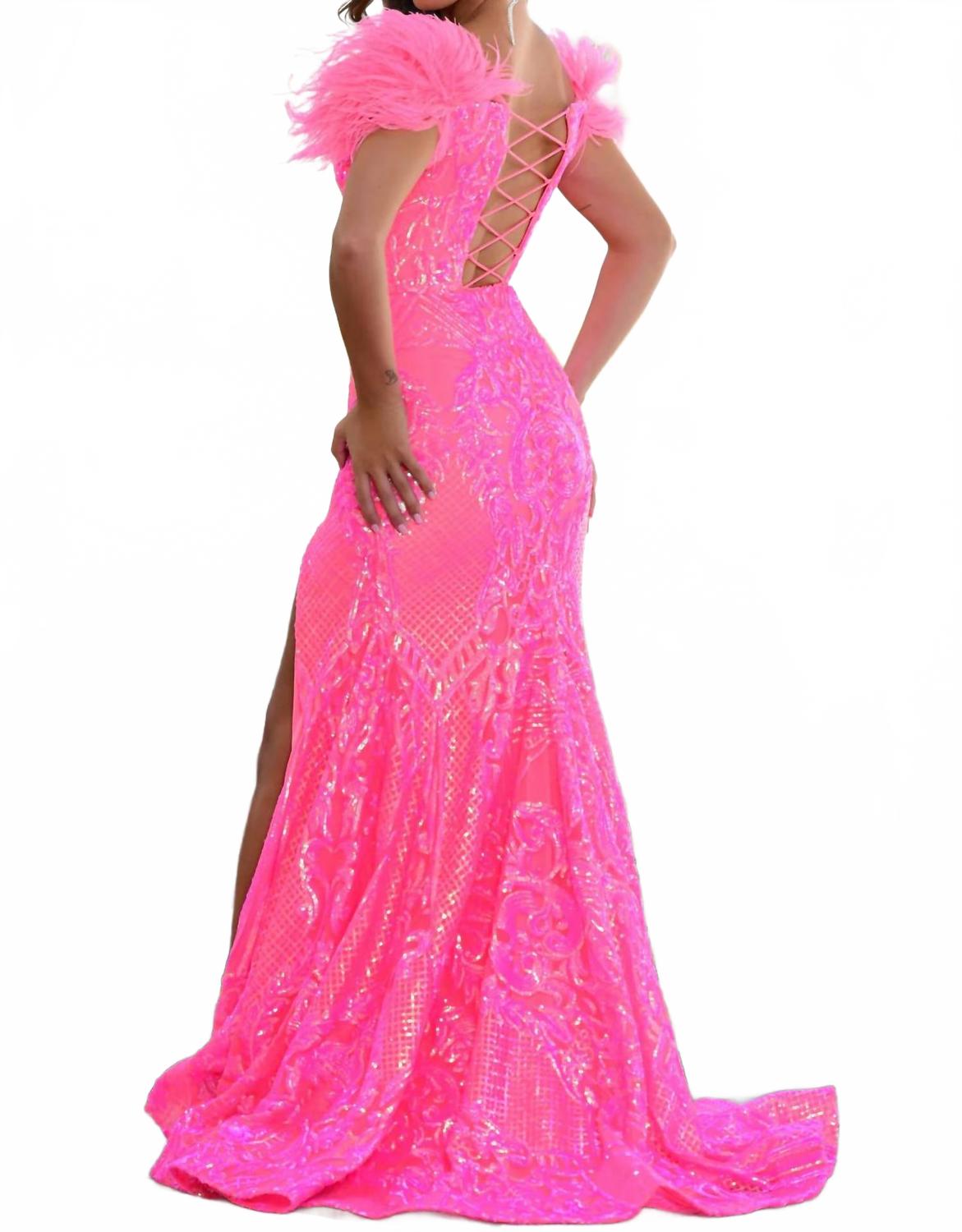Блестящее платье с перьями в неоново-розовом цвете Ava Presley
