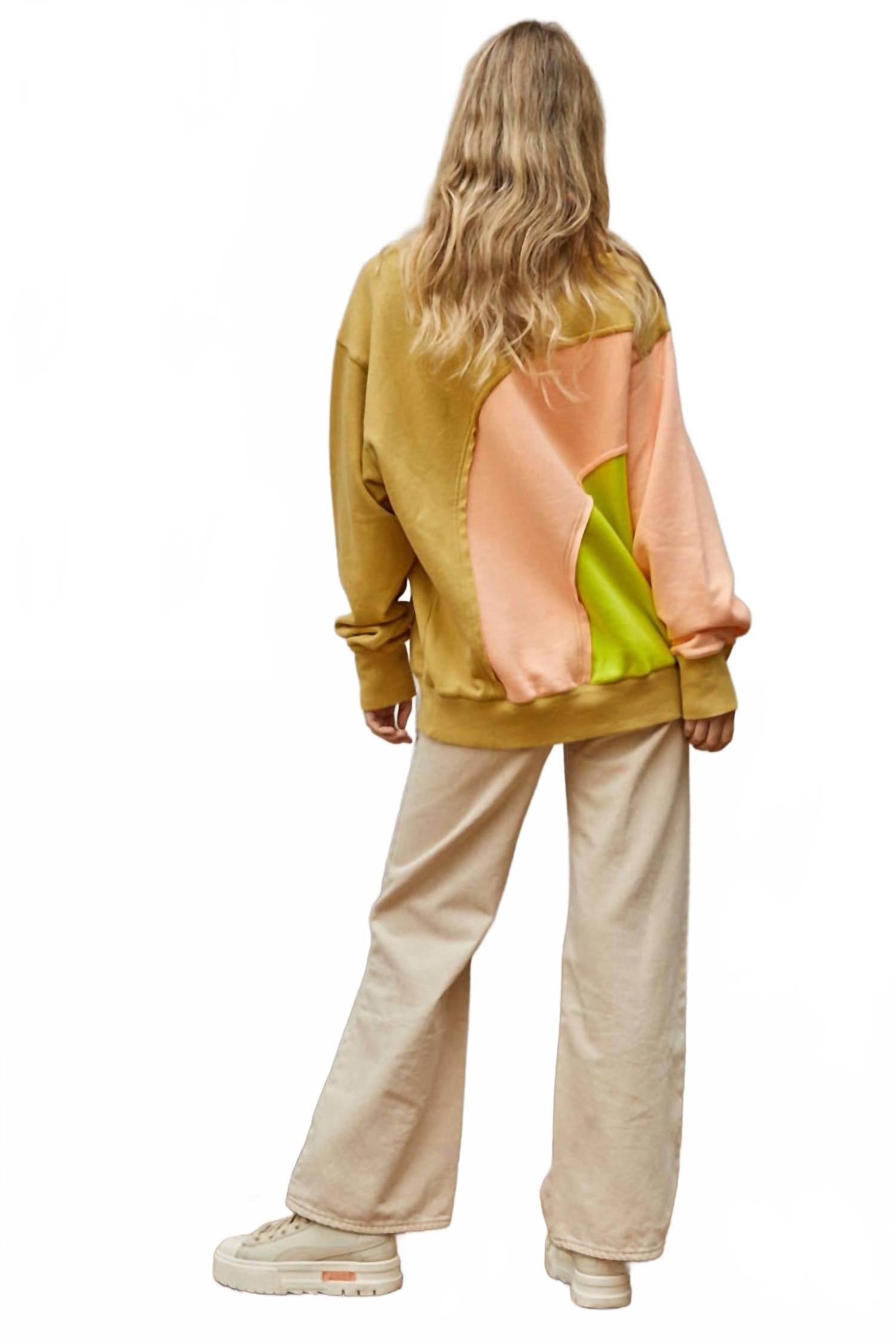 Прохладная погода требует многослойности, и нам очень нравится эта очаровательная толстовка по всем очевидным причинам. Эта толстовка из французского трикотажа с круглым вырезом отличается яркими цветами, деконструированным и собранным узором и модным свободным кроем! Она станет вашей новой любимой толстовкой! Характеристики кроя: Длина: (S) 26 1/4", (M) 26 3/4", (L) 27 1/4", Обхват груди: (S) 24 1/4", (M) 25 1/4", (L) 26 1/4", Длина рукава: (S) 23 1/2", (M) 23 3/4", (L) 24".