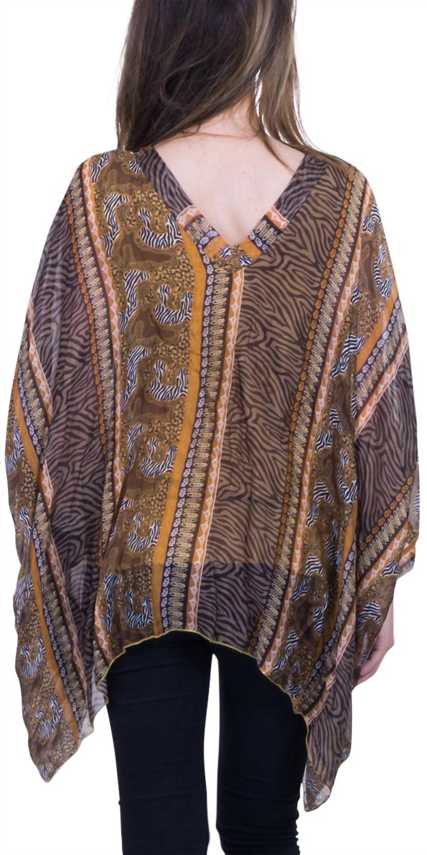 Идеально подходит для весеннего образа в стиле бохо-шик. Элегантный кафтан с V-образным вырезом, рукавами три четверти и изысканным цифровым племенным принтом. Изготовлен из чистого 100% шелка с приятной подкладкой из 95% вискозы и 5% эластана. Роскошь и комфорт. Сделано в Италии. Модель легко надевается, идеально подходит для праздничной вечеринки. Только ручная стирка. Рост модели 178 см.