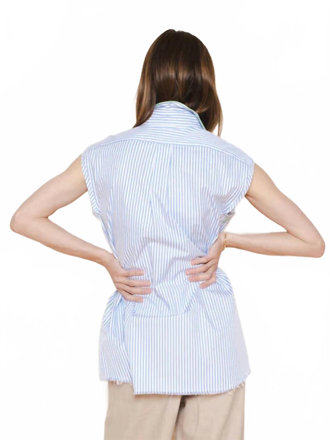 Универсальная блузка, которая подойдет как для работы, так и для ужина! Рубашка Gardener Stripe от Raquel Allegra - это современная интерпретация классической блузки, идеально подходящая как для работы, так и для отпуска. Эта синяя полосатая рубашка без рукавов выполнена из 100% хлопка для комфорта и воздухопроницаемости. Уникальные детали рубашки включают необработанные края, яблочно-зеленый кабачковый шов слева и элегантный крой. Застежка: пуговицы. Уход: машинная стирка.