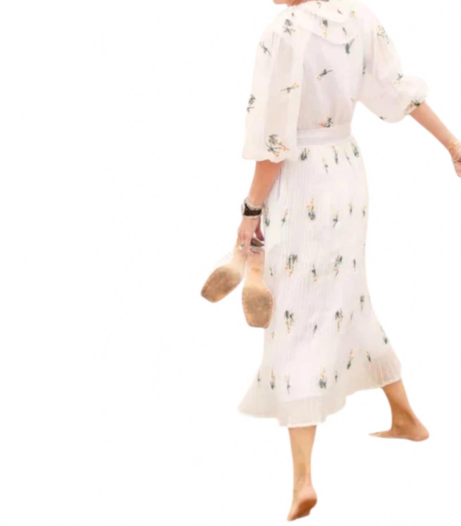 Почувствуйте причудливое очарование платья миди Blanche от Buru, идеально сочетающего элегантность и игривый стиль с цветочным узором «Белая маргаритка». Это платье А-силуэта с рукавами до локтя и широким воротником, подчеркивающим фигуру, дополнено утягивающей талией для дополнительной элегантности. Идеально подходит для самых разных случаев, будь то бранч или посещение церкви. Дополните его ярким поясом для создания особого образа.