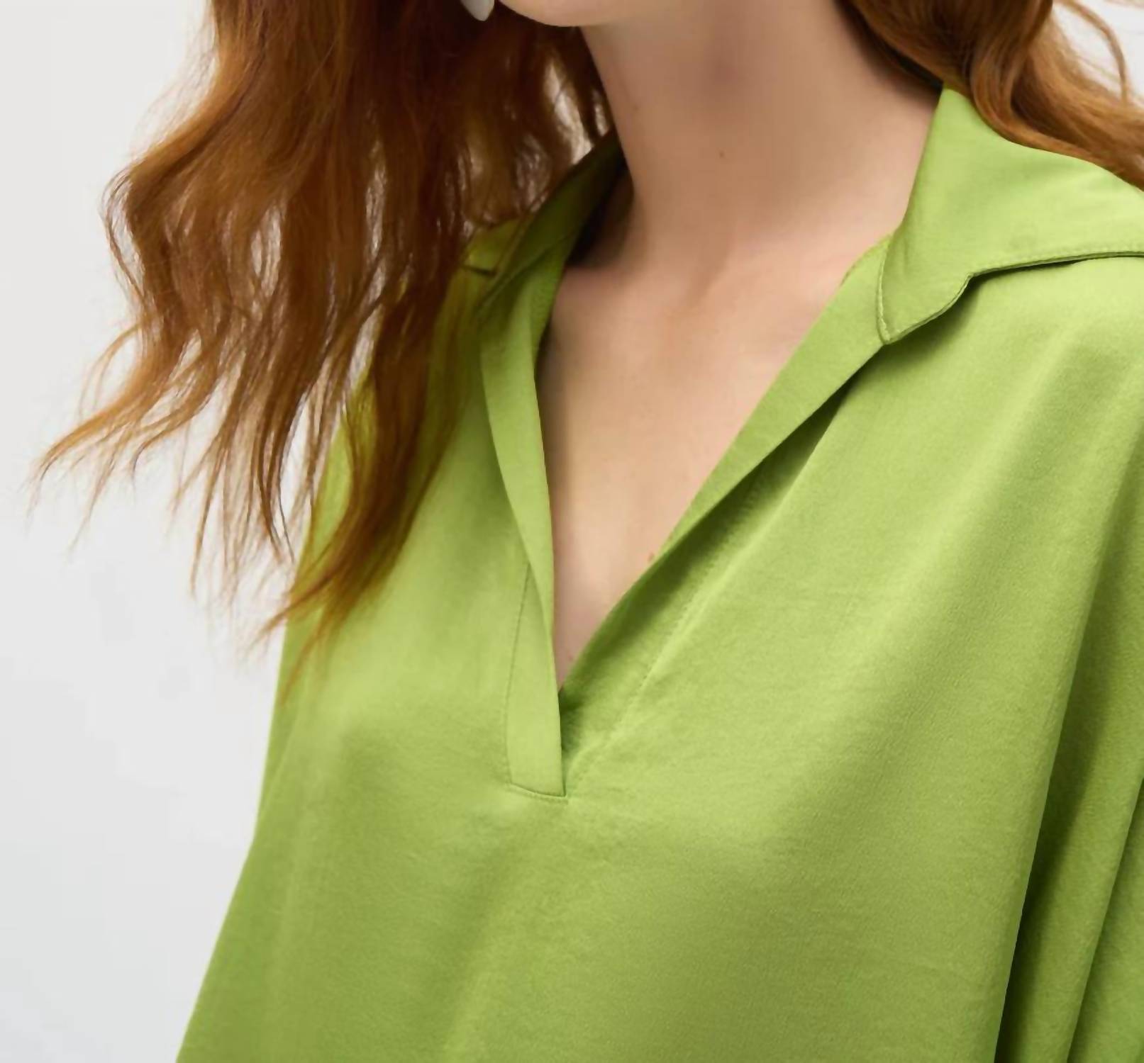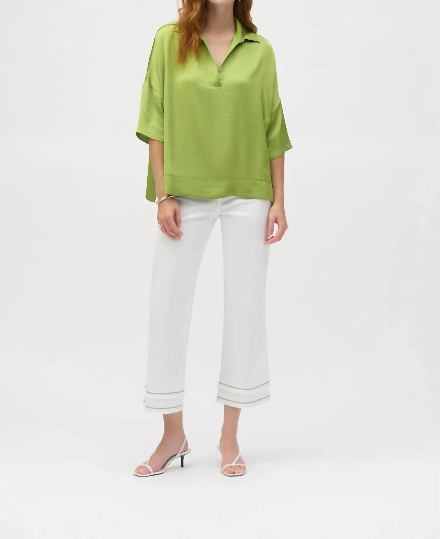 С рукавами «летучая мышь» три четверти. Изготовлено из 100% полиэстера. Изящный свободный силуэт. V-образный вырез с воротником и застежка на липучке для удобства ношения. С гордостью произведено в Канаде. Уход за этим топом: ручная стирка в холодной воде, сушка в расправленном виде в тени, предотвращение использования отбеливателей, машинной сушки, глажки и химчистки.