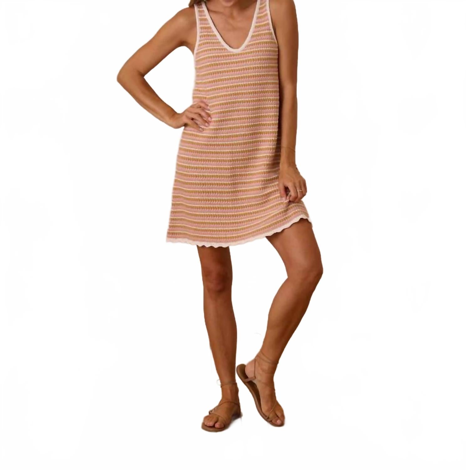 Идеальное мини-платье для теплых месяцев. Представляем мини-платье Rylee & Cru Crochet - игривый комплект без рукавов, идеально подходящий для солнечных дней. Это платье из хлопковой смеси (60% хлопка и 40% акрила) украшено очаровательным узором в розовую полоску. Благодаря V-образному вырезу и спинке, а также кокетливому фестончатому подолу, оно создаст стильный и комфортный образ. Наслаждайтесь легкостью застежки-липучки и сохраняйте свежесть благодаря ручной стирке.
