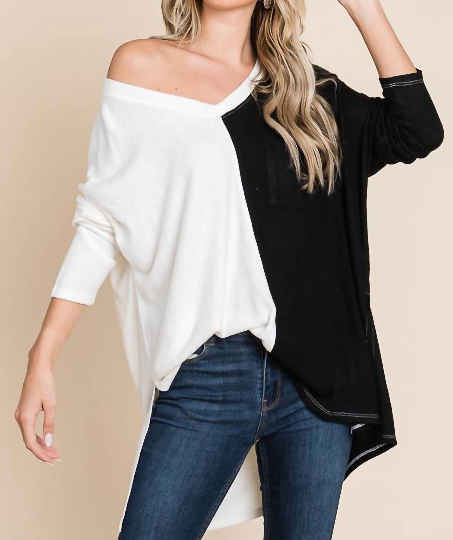 Двухцветный свитер в мягком белом сочетании Culture Code