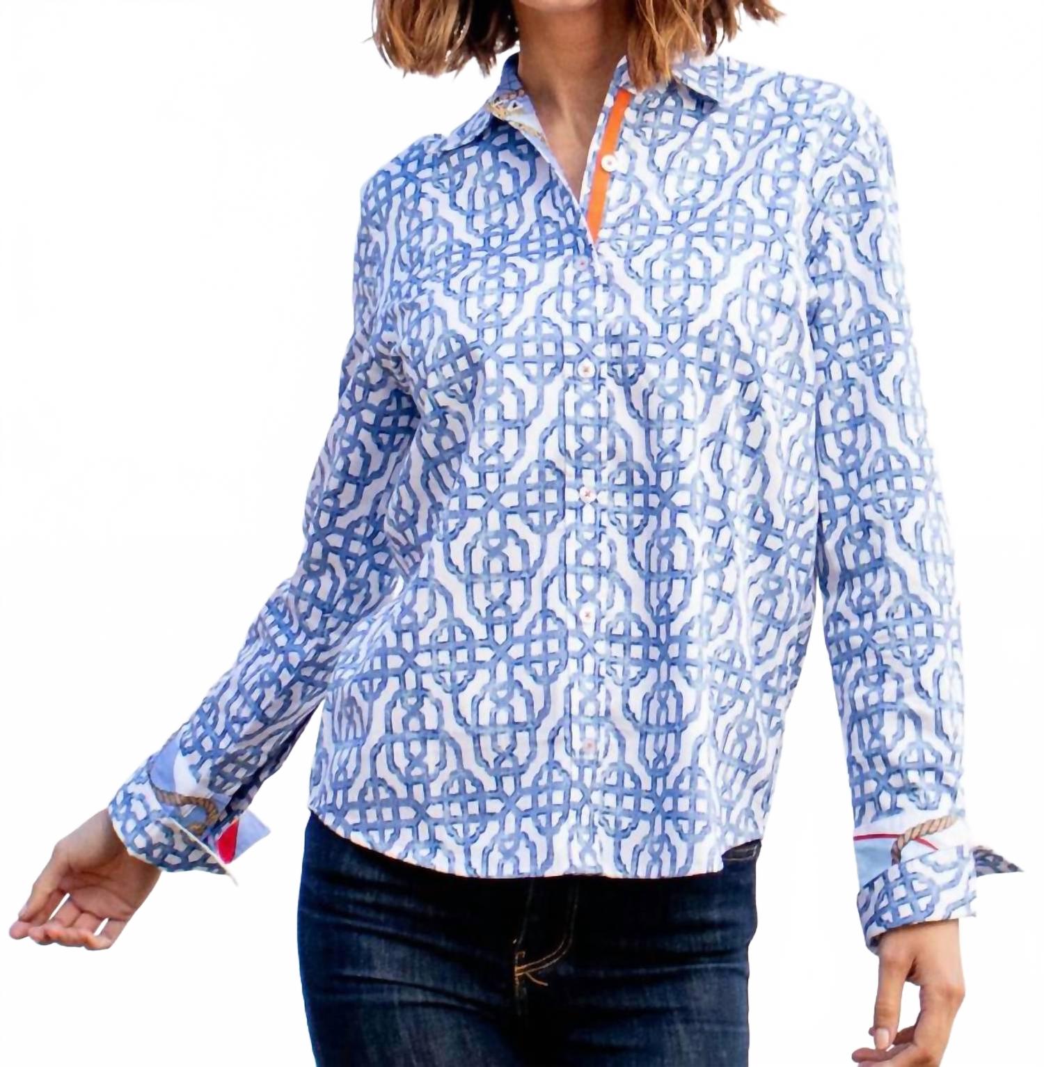Рубашка Rome в синем геометрическом принте Dizzy-Lizzie