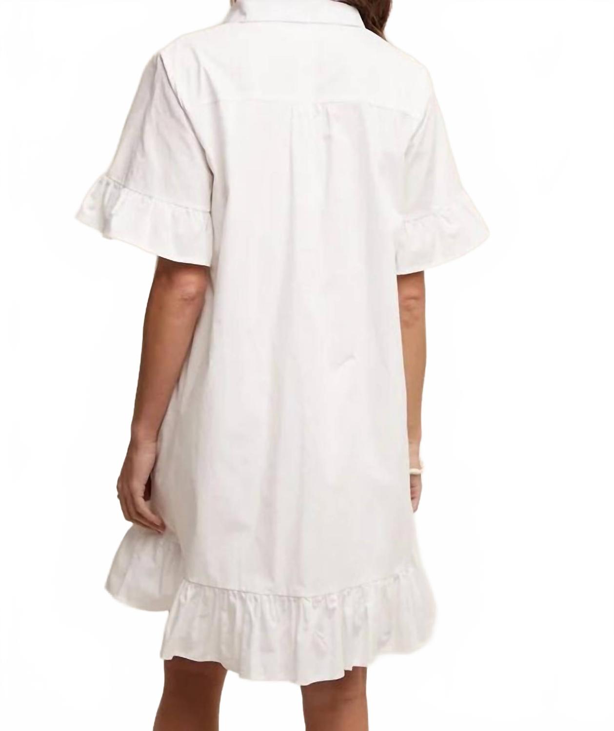 Откройте для себя платье-рубашку на пуговицах с оборками от Listicle - минималистичный летний must-have для вашего гардероба в отпуске. Это мини-платье с короткими рукавами, очаровательными оборками на манжетах и оборкой по низу выполнено из белоснежного хлопка. Состав: 100% хлопок, подкладка: 100% полиэстер. Застежка: пуговицы, практичные потайные карманы в боковых швах. Уход: машинная стирка. Предназначено для женщин.