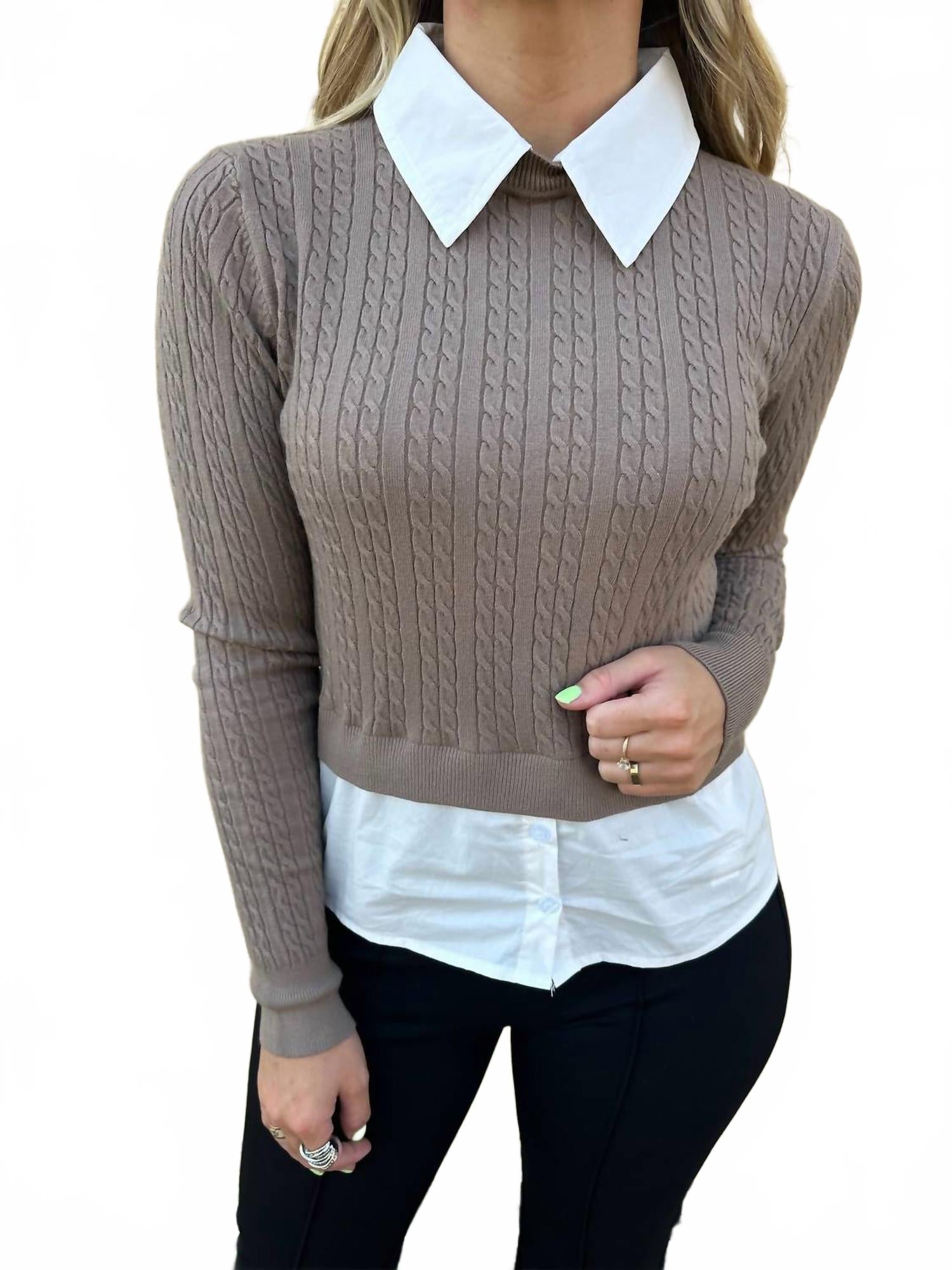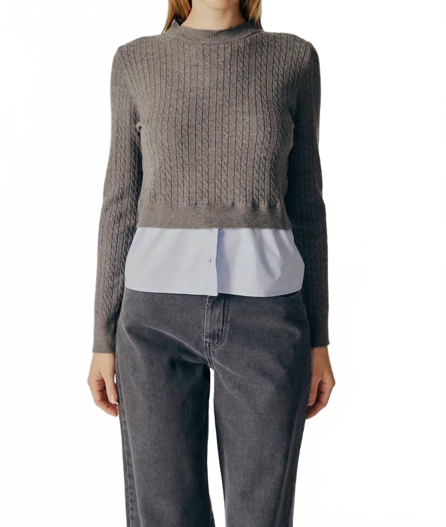 Блузка, которая никогда не выйдет из моды. Откройте для себя джемпер Amsonia 2 в 1 Shirt от DELUC - стильное сочетание трикотажного свитера и рубашки из фактурной серой меланжевой ткани. Эта уникальная модель с воротником и длинными рукавами идеально подходит для перехода от весеннего делового гардероба к деловому. Созданная для женщин, эта универсальная модель идеально подходит как для помолвок, так и для создания стильных образов на каждый день. Застежка - на застежку.