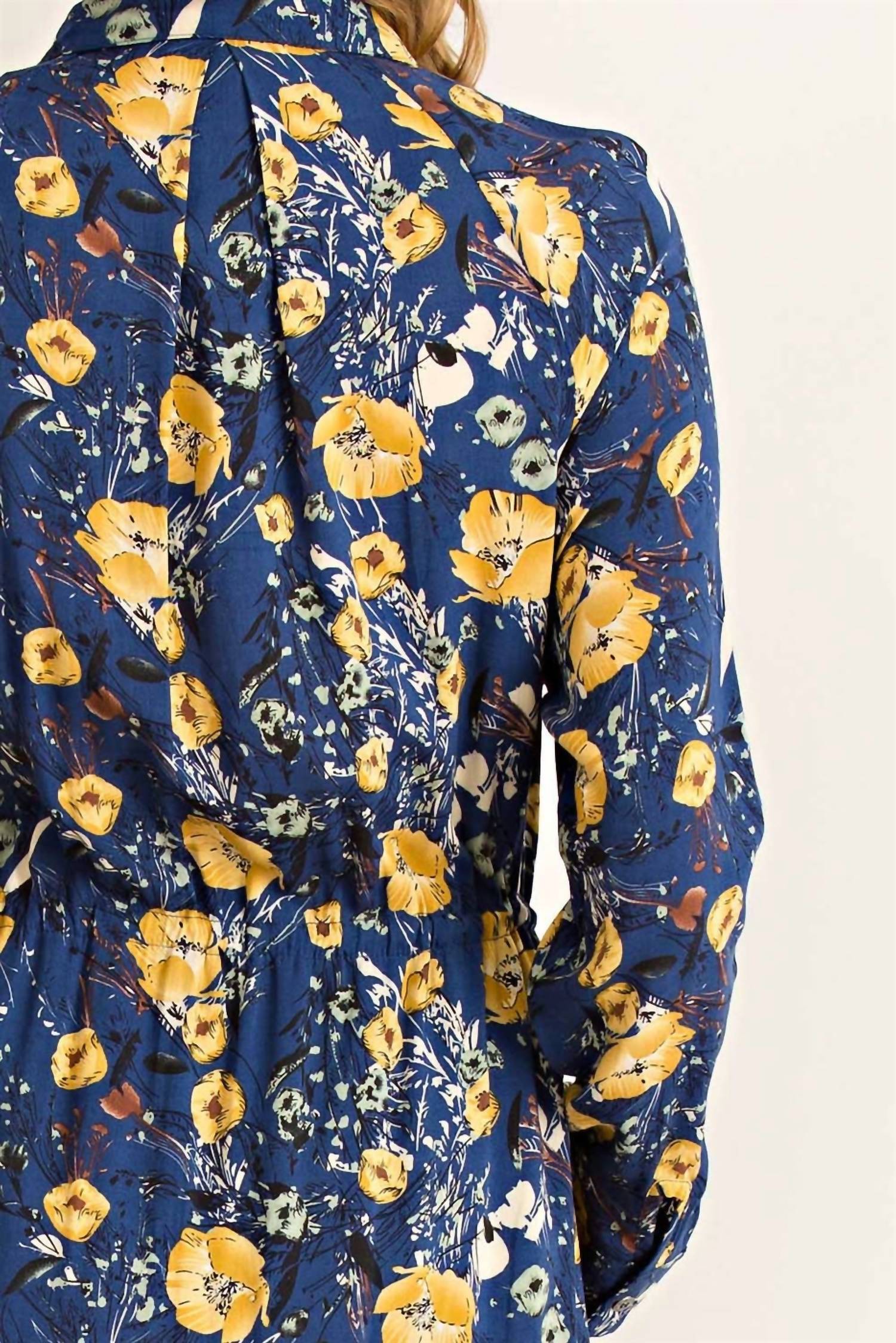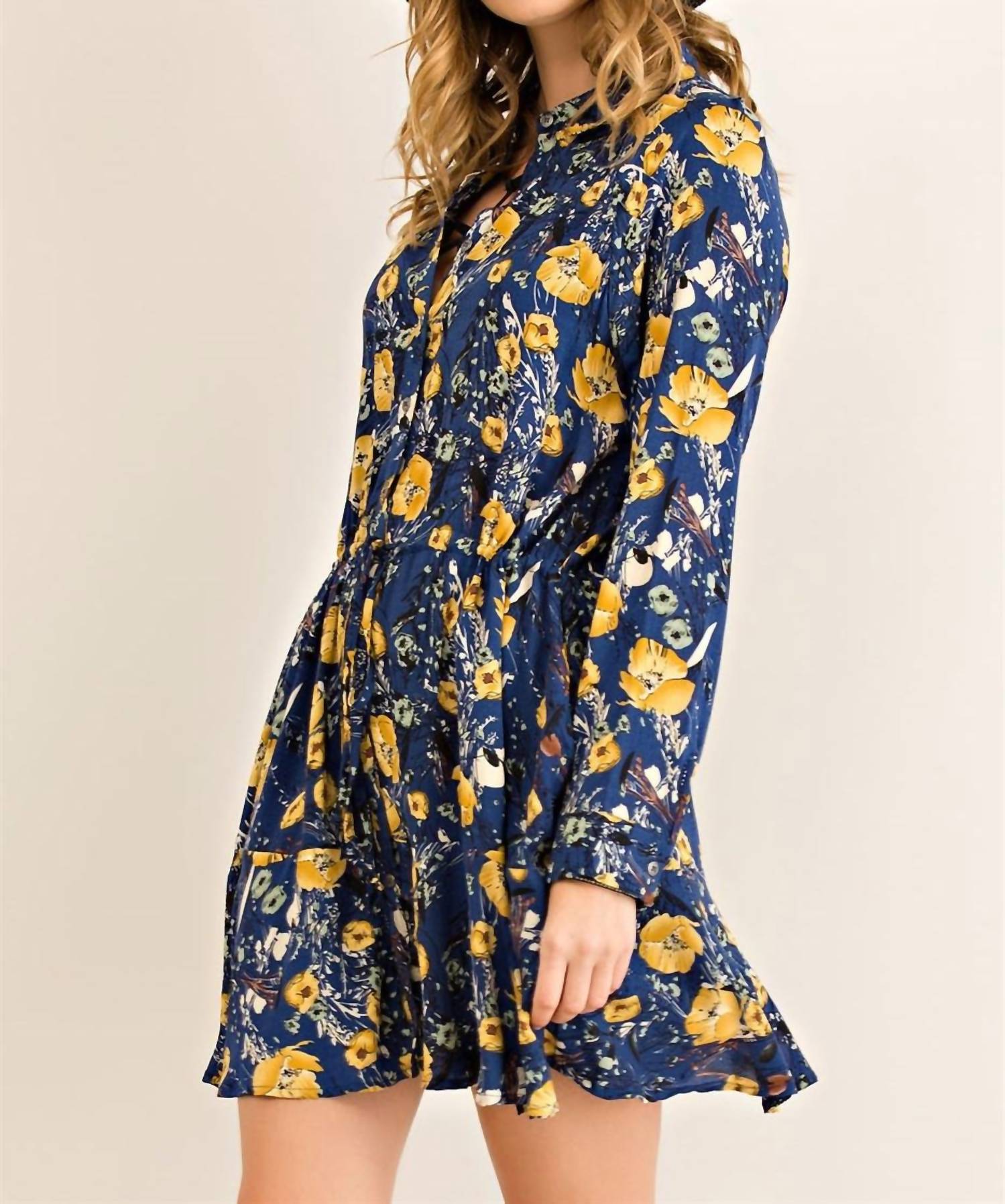 Синее мини-платье с цветочным принтом на пуговицах Entro