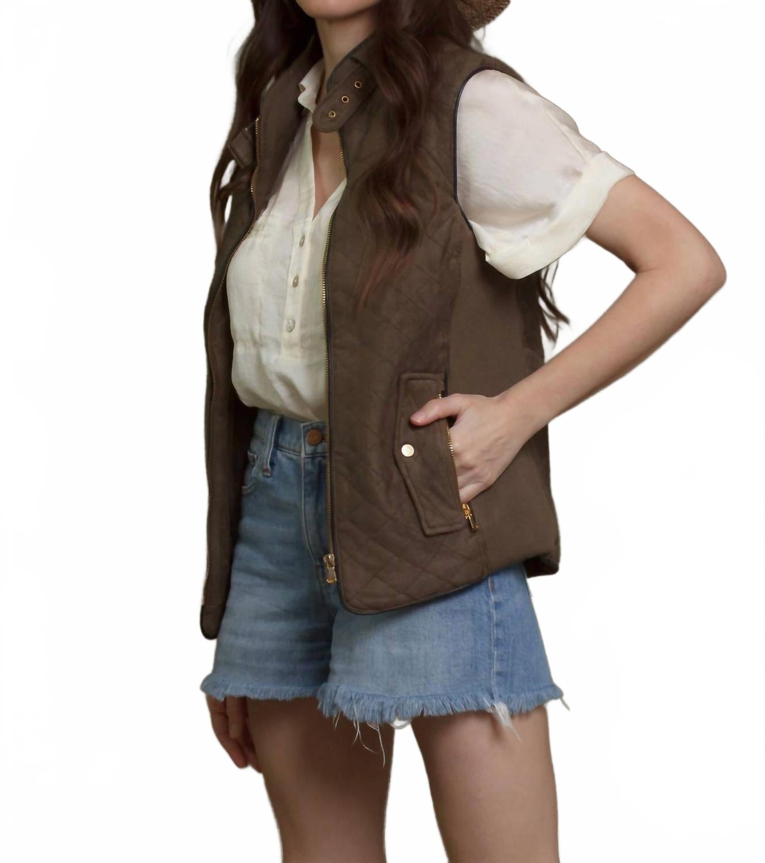 Наденьте этот жилет поверх полностью черного наряда, чтобы создать идеальный образ. Создайте шикарный многослойный образ с жилетом Sahara Quilted Pattern от Fate, демонстрирующим эффектный оливковый оттенок и стеганый дизайн. Этот жилет без рукавов сочетает в себе искусственную замшу с контрастными ребристыми боковыми вставками, а также стильную окантовку из искусственной кожи и золотистые акценты на пряжке и молнии. Состав: полиэстер. Уход: рекомендуется ручная стирка.
