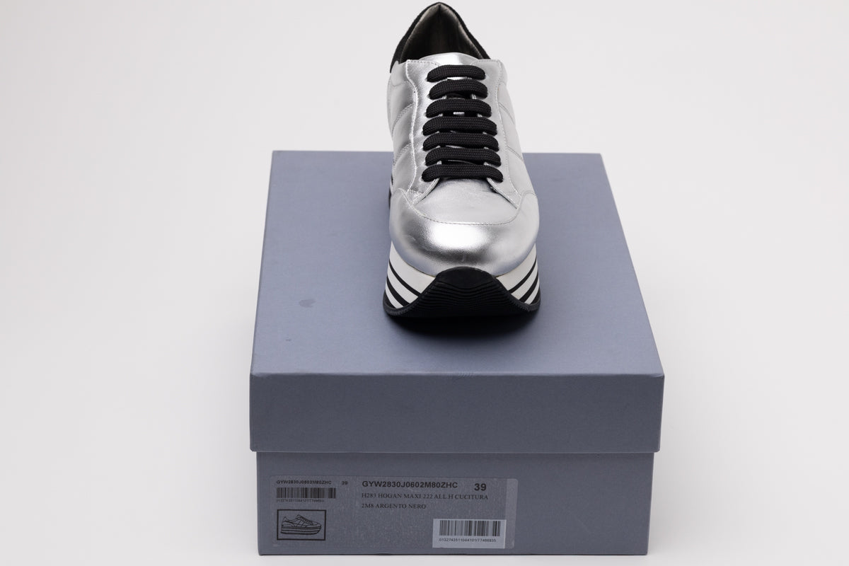 Hogan Maxi 222 серебряные кожаные кроссовки