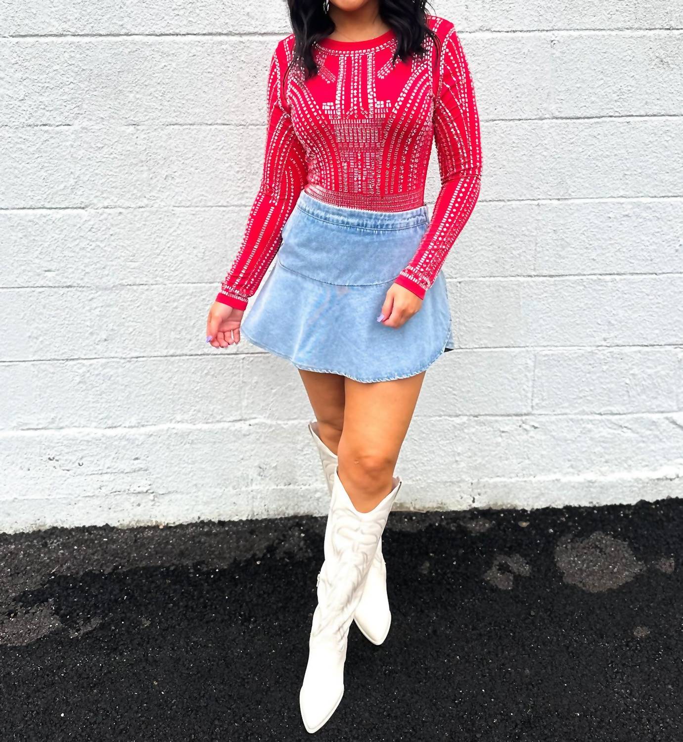 Кто не любит качественные боди? Подчеркните свой стиль с помощью боди Guilty As Sin Jewel Embellished от Blue Buttercup, идеально подходящего для создания яркого образа. Эта привлекательная модель отличается фактурным узором, длинными рукавами и классическим круглым вырезом в ярко-красном цвете. Это боди идеально подходит для вечернего выхода, сочетая в себе гламур и изысканность. Наслаждайтесь элегантностью без лишних застежек благодаря лаконичному крою без застежек.