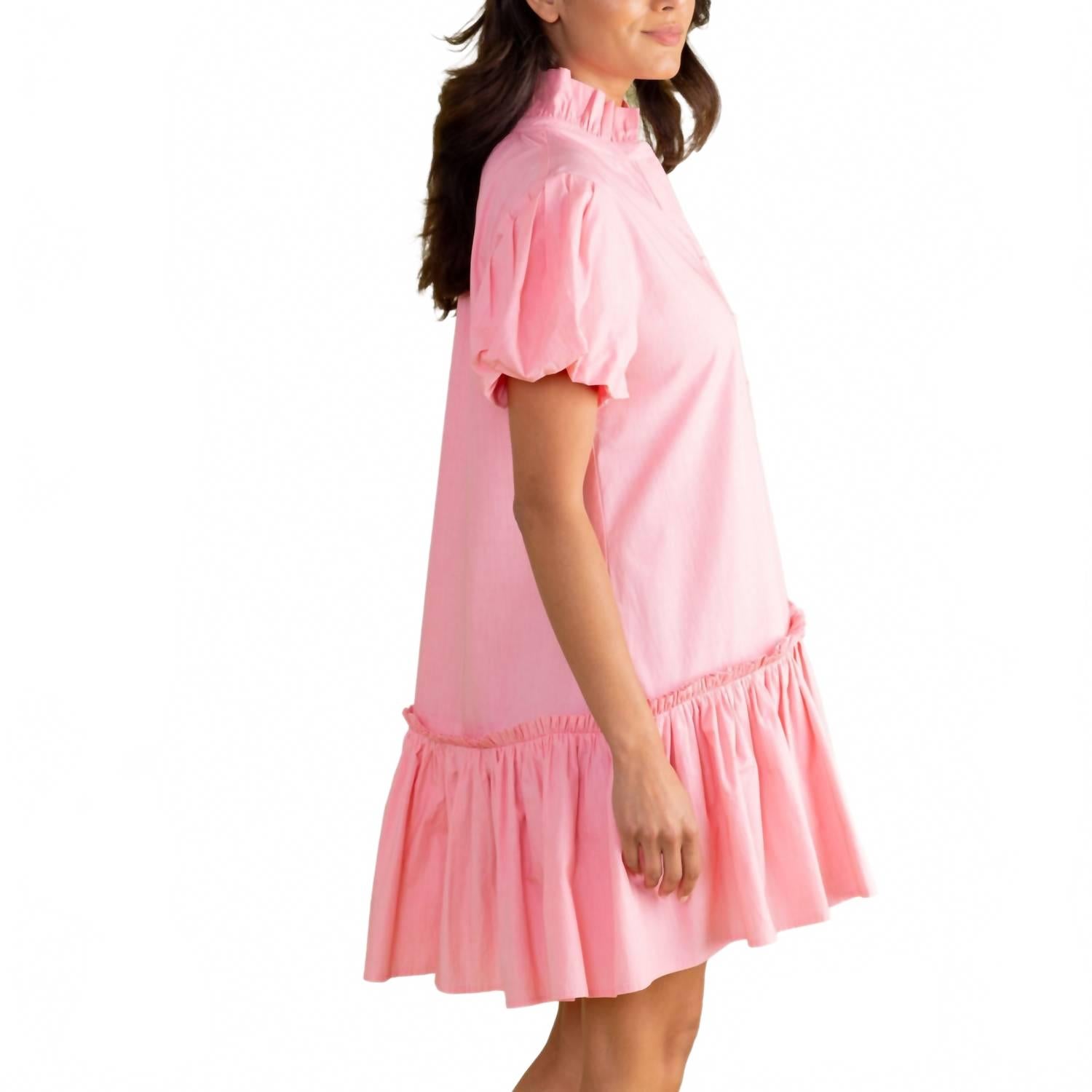 Короткое и воздушное платье для теплых дней. Платье Gia Pleated Dress от S'edge - мечтательное женственное изделие, созданное для непринужденной элегантности в нежно-розовом оттенке. Это мини-платье отличается очаровательными короткими рукавами-буфами, выгодно подчеркивающим фигуру А-силуэтом и игривым оборчатым подолом. Однотонный цвет и вырез горловины придают ему изысканность, идеально подходящую для весенних мероприятий, например, помолвок. Застежка: пуговицы.