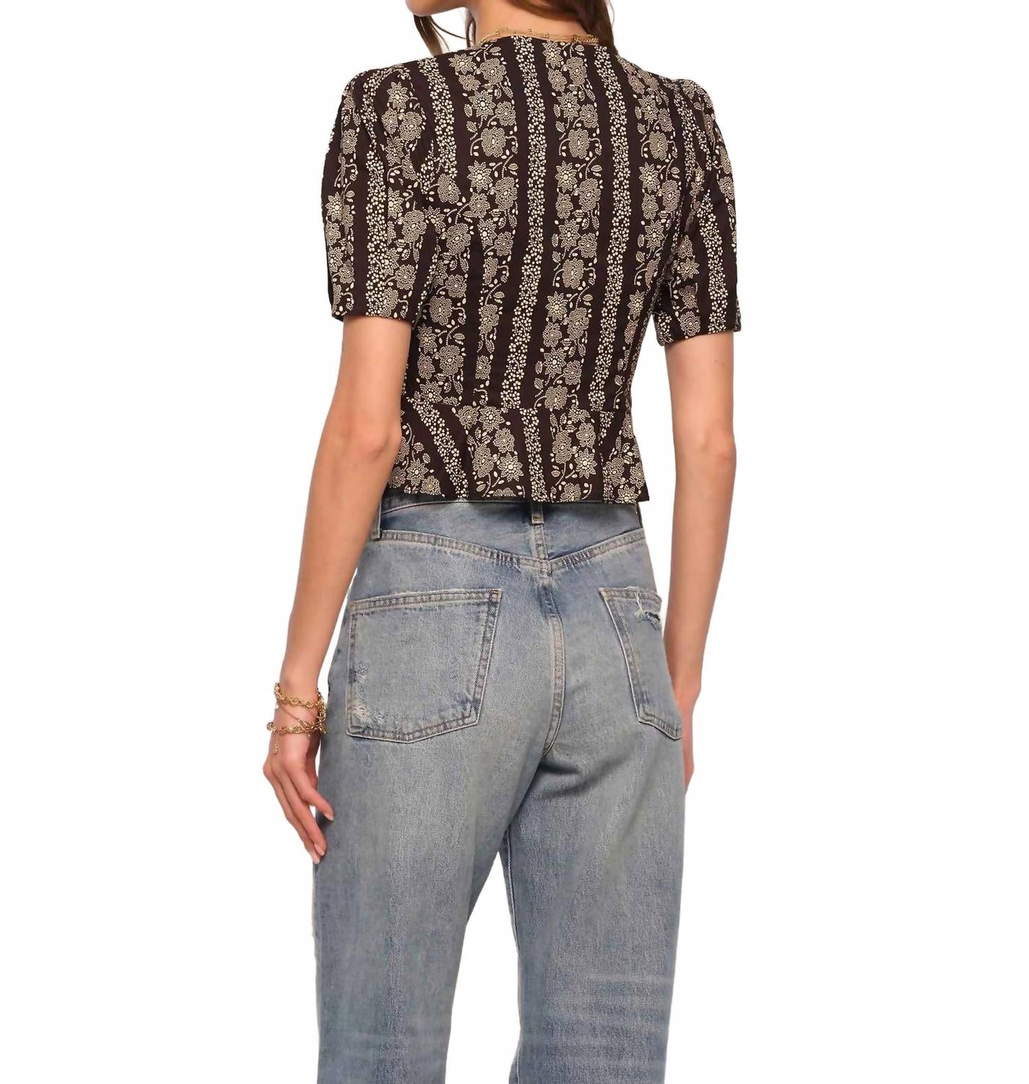 Сочетайте его с любимыми джинсами и шлепанцами для следующего девичника. Представляем женский топ Havana от Heartloom - шикарное дополнение к любому образу для званого ужина. Эта блузка с узором классического черного цвета с короткими рукавами-фонариками и круглым вырезом, украшенная пуговицами в тон и очаровательными бантами. Изготовлена ​​из приятного хлопка и застежка на пуговицы. Идеально сочетается с джинсами и станет стильным выбором для теплых летних вечеров.