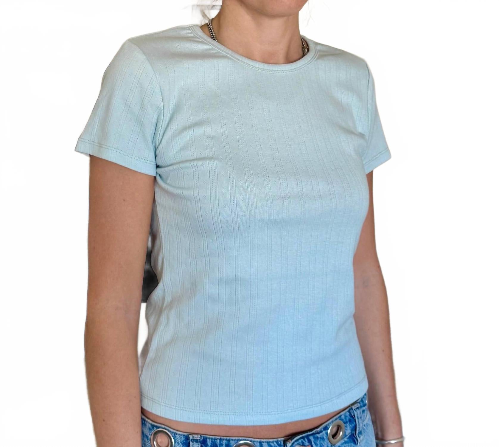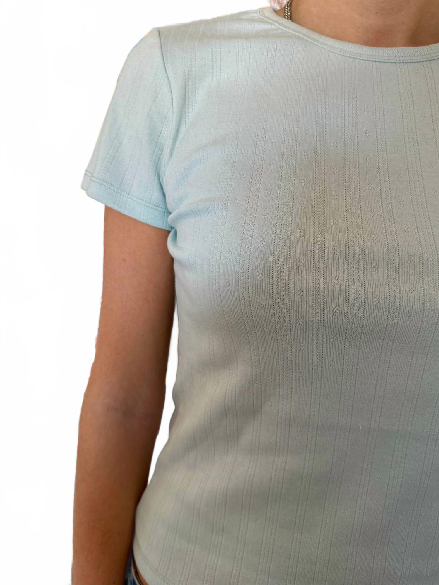 Изысканное дополнение нежно-белого оттенка для модниц-путешественниц. Приталенная детская футболка с классическим круглым вырезом и короткими рукавами. Изготовлена из комфортной ажурной трикотажной ткани, состоящей из 95% хлопка и 5% спандекса. Модель легко надевается и не требует усилий. Ручная стирка сохраняет деликатную структуру ткани.