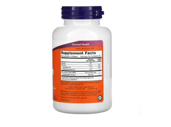 Лецитиновые мягкие капсулы NOW ® без ГМО содержат фосфатидилхолин, который составляет основную часть нашего мозга и нервной системы. Лецитин также содержит природные незаменимые жирные кислоты и инозитол. Лецитин помогает эмульгировать жиры, позволяя им диспергироваться в воде.
