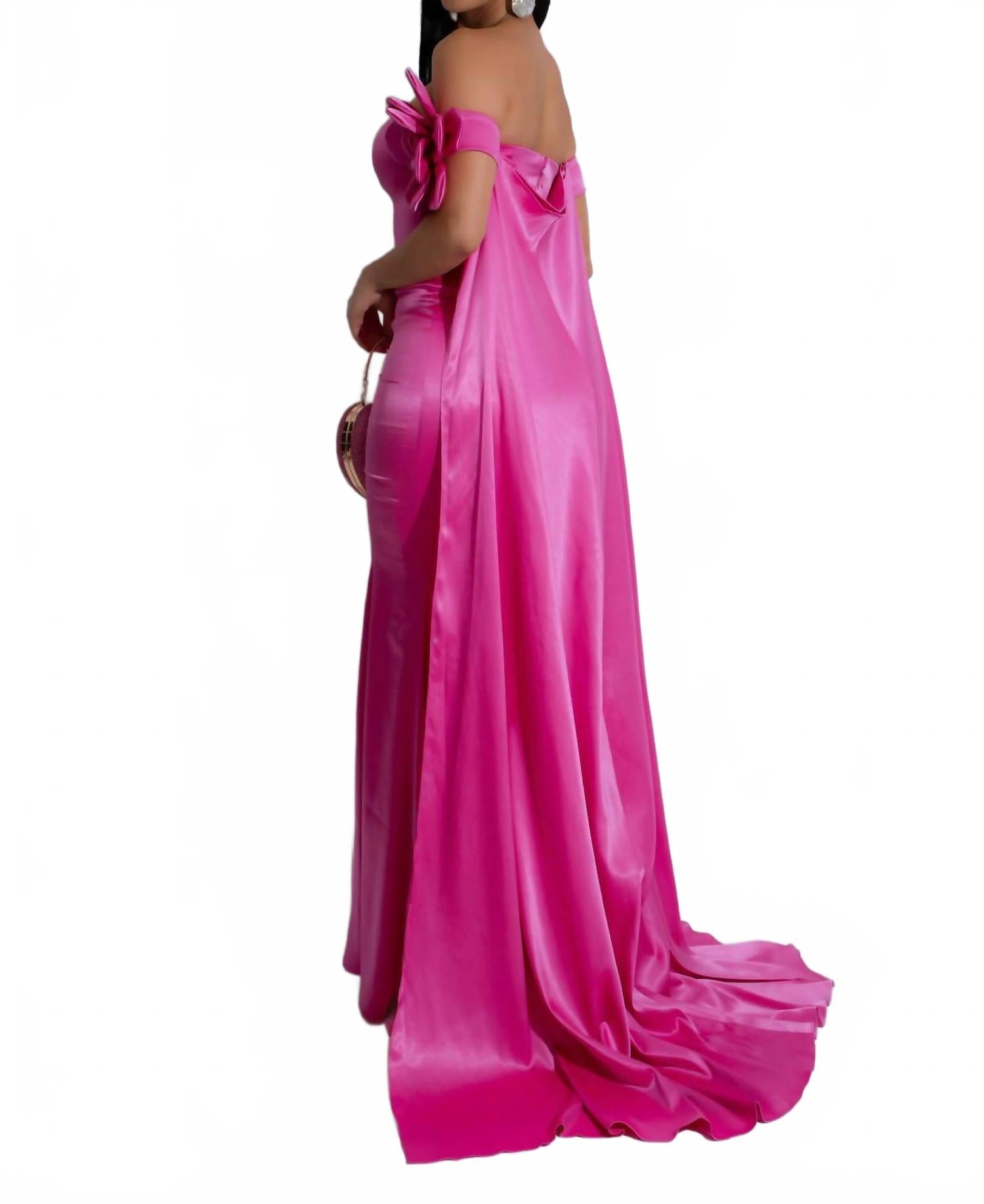 Платье макси, столь же милое, сколь и удобное. Представляем атласное платье макси Royal Dream Floral от Diva, силуэта «русалка» без бретелек, созданное для того, чтобы впечатлять. Это розовое вечернее платье из роскошного атласа украшено цветочным узором, воплощающим суть весенней изысканности. Застежка: молния сзади. Уход: машинная стирка. Идеально подходит для гламурных вечеров: эффектные детали в виде лепестков, как с накидкой, так и без нее, добавят романтики.