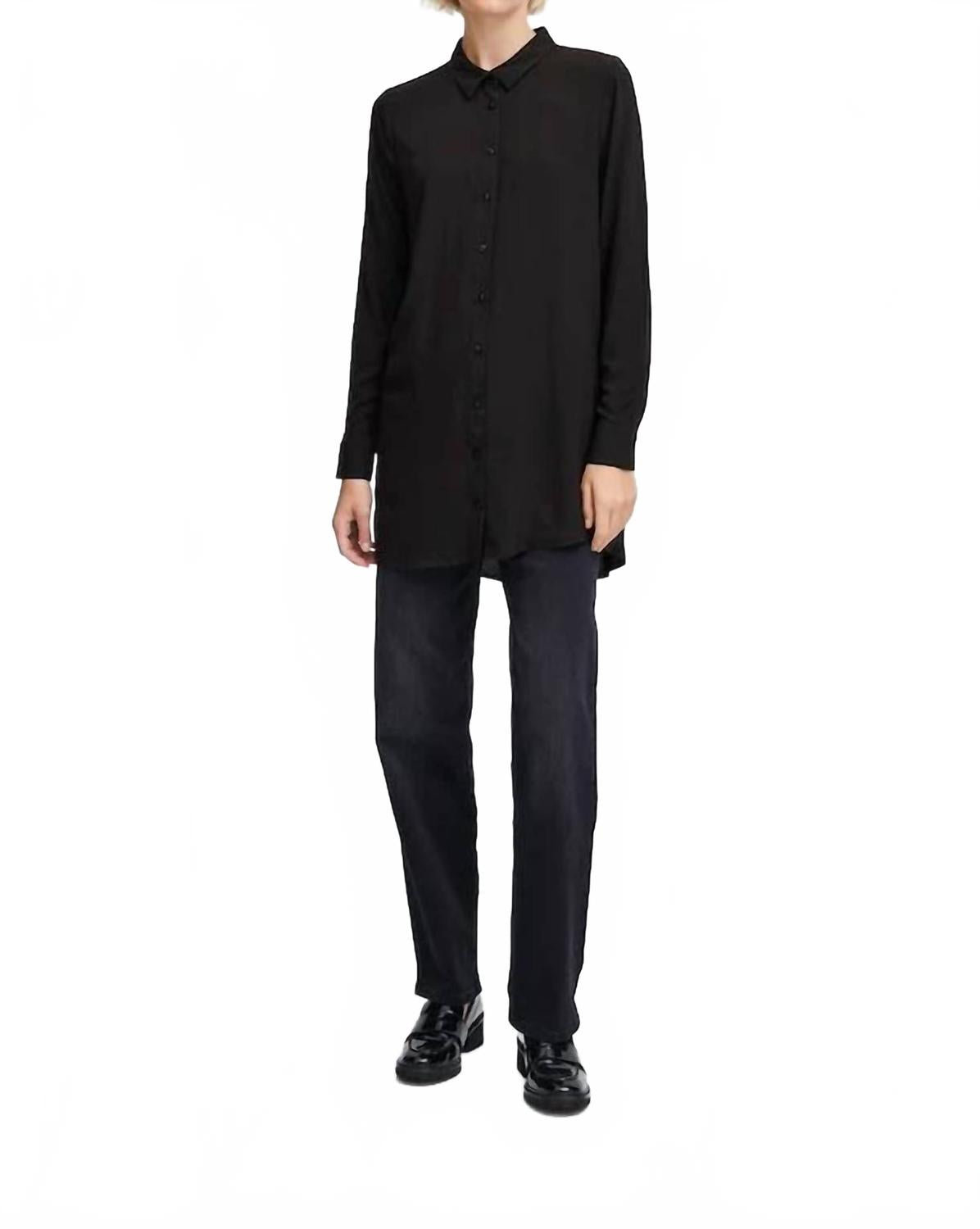 Эта рубашка на пуговицах удобная и в то же время элегантная. Представляем рубашку на пуговицах с длинным рукавом от ICHI, созданную для женщин, ценящих элегантность и универсальность. Эта рубашка с длинными рукавами, однотонным черным цветом и классическим воротником создает классический образ, а длина до талии. Изготовлена ​​из 100% вискозы, мягкая на ощупь и легкая в уходе. Застежка: пуговицы. Уход: машинная стирка. Идеально подходит для работы и любых случаев.
