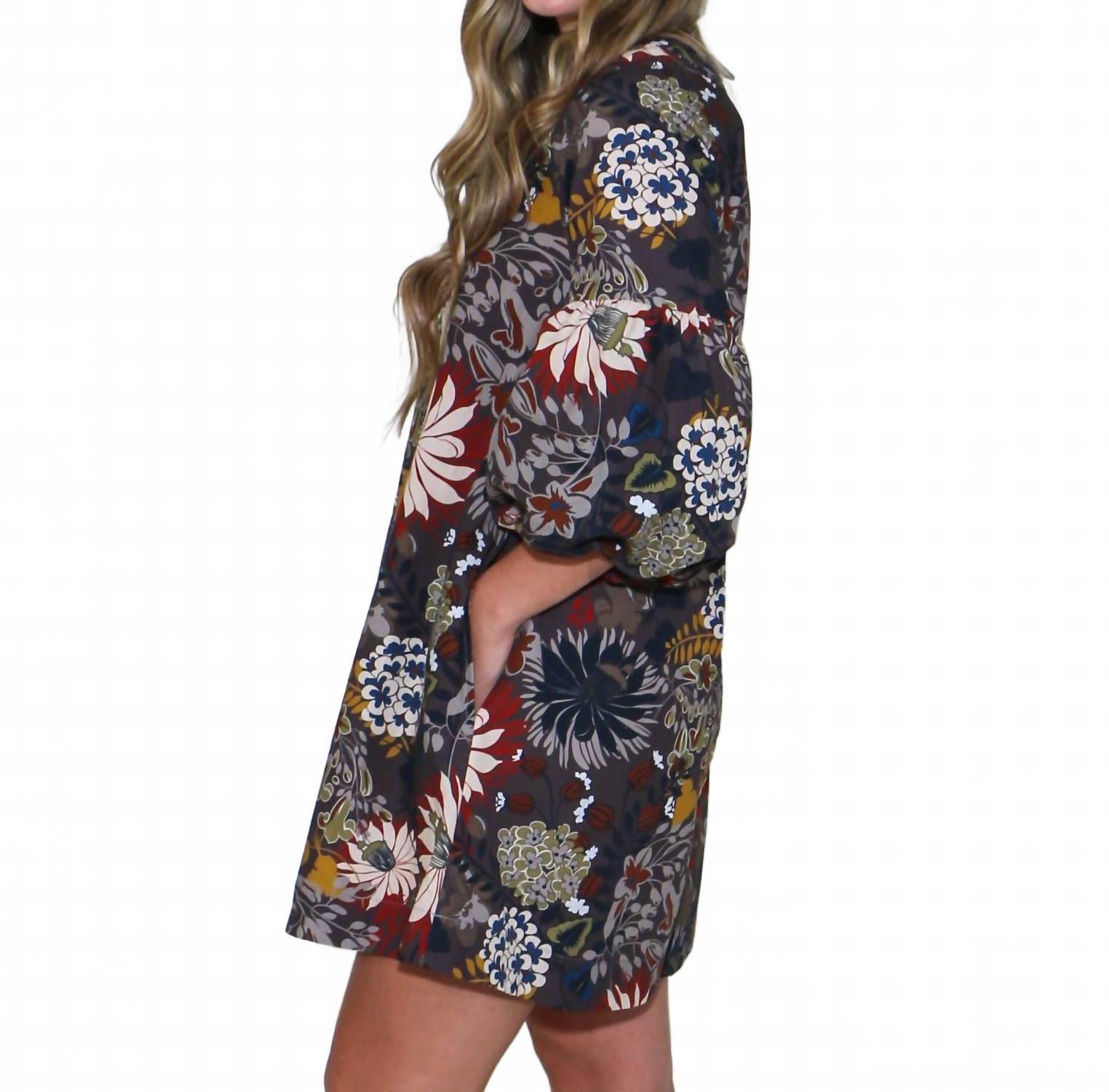 Короткое и воздушное платье для теплых дней. Вступите в пору лета в платье Ivy Jane Autumn Blossoms - ярком многоцветном изделии, идеально подходящем для любого случая. Это мини-платье А-силуэта с рукавами три четверти и женственным V-образным вырезом. Благодаря удобному крою, оно легко надевается и обеспечивает комфорт, делая его неотъемлемой частью гардероба. Идеально подходит для праздничных мероприятий, сочетая в себе непринужденное очарование и элегантность.