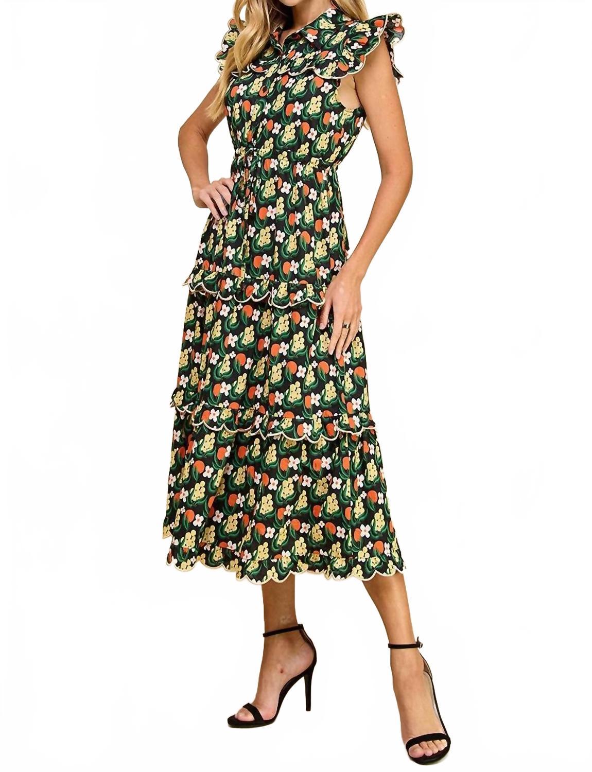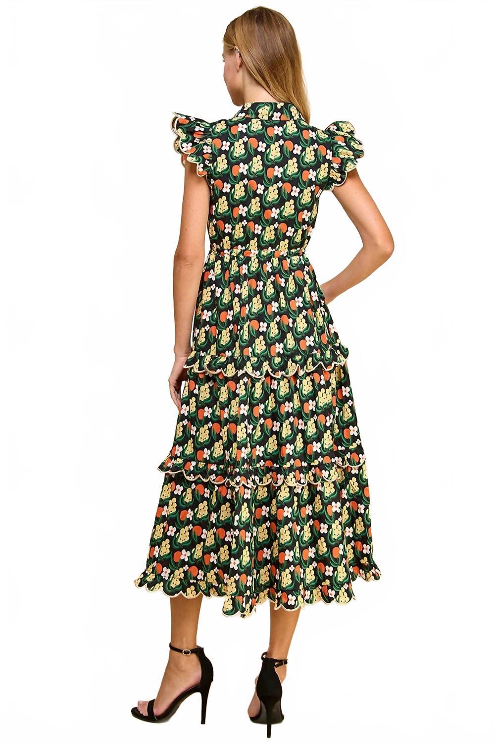 Откройте для себя платье миди Tatum от TCEC - элегантный и стильный выбор для любого случая. Это черное платье-миди без рукавов с очаровательными струящимися деталями, фестончатым подолом и ярким цветочным принтом. Платье изготовлено из 100% хлопка на подкладке из полиэстера, имеет длину 125 см и классический воротник. Застежка на пуговицы, функциональный вырез на пуговицах и регулируемую талию на шнурке. Машинная стирка.