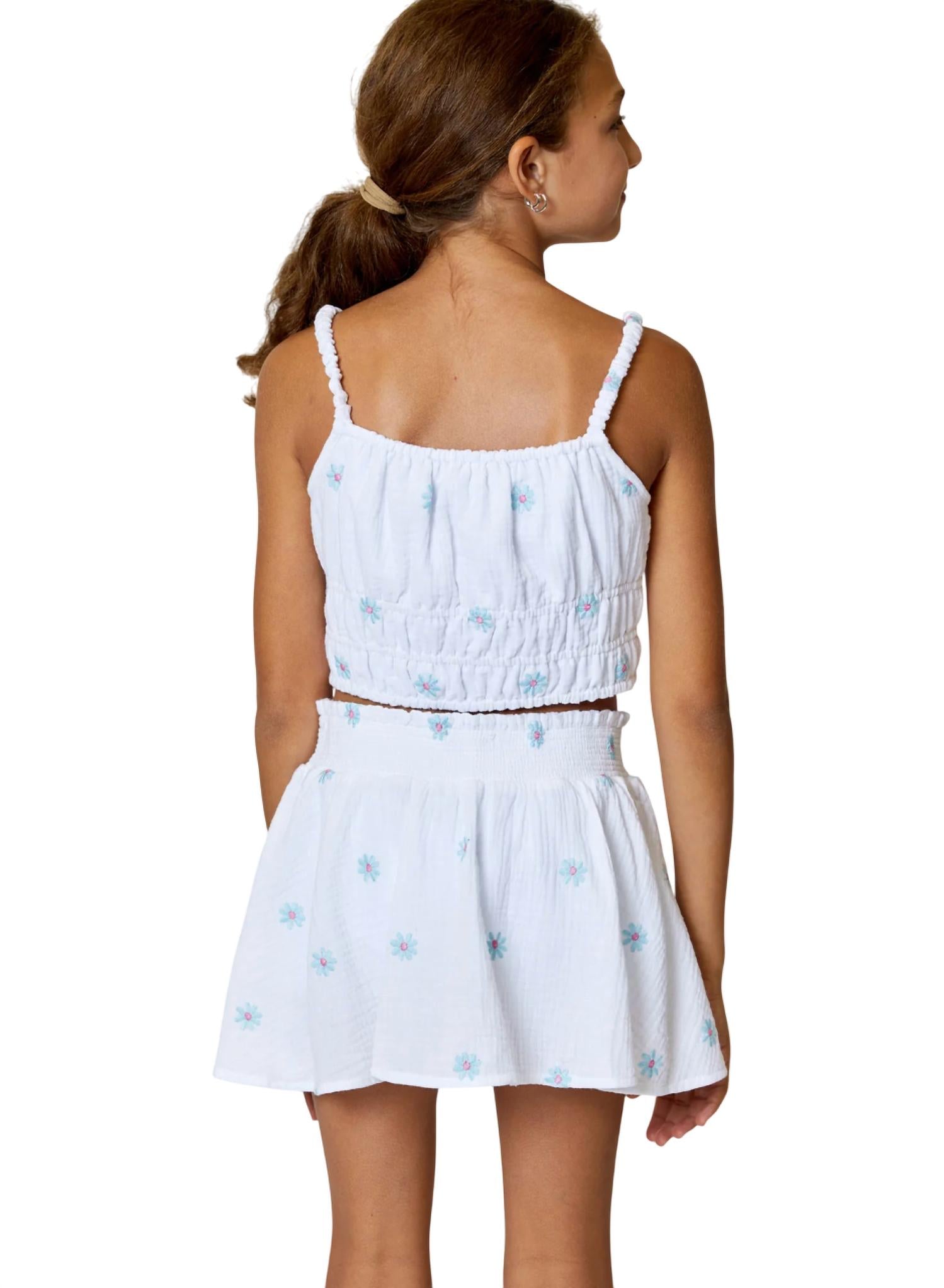 Девчачьи вышитые муслиновые шорты-юбка в белом цвете Design History