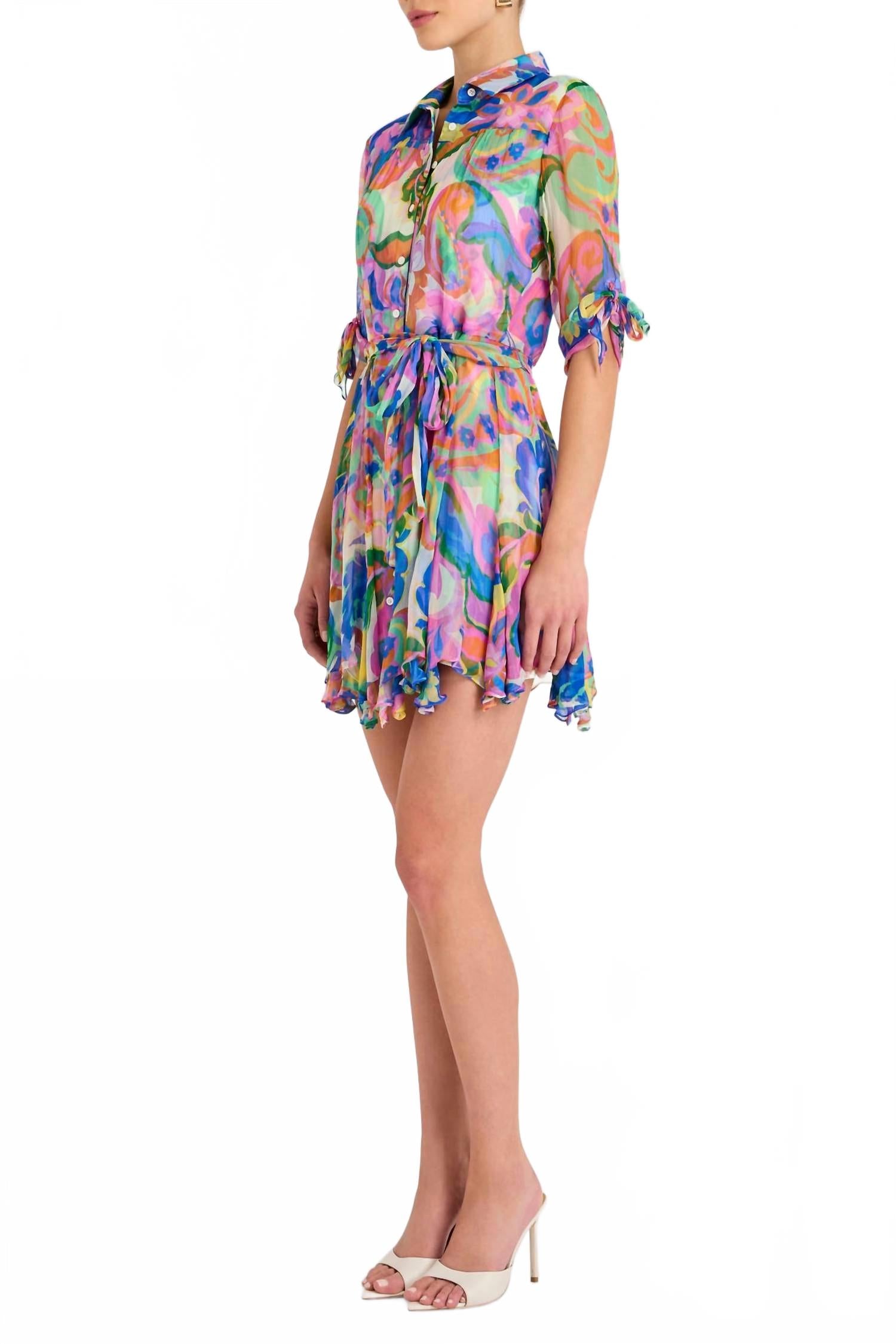 Идеальное мини-платье для теплых месяцев. Представляем платье Savannah от Amanda Uprichard - элегантное дополнение к вашему летнему гардеробу с эффектным принтом Fleetwood. Это мини-платье А-силуэта с цветочным узором и рукавами три четверти идеально подойдет для любого званого ужина или празднования Нового года. Платье изготовлено из вискозы, имеет стильный воротник и удобную застежку на пуговицы. Для оптимального ухода рекомендуется сдавать платье в химчистку.