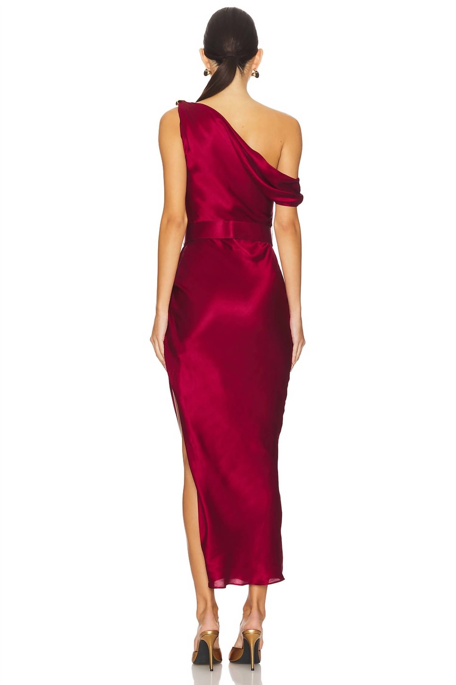 Это платье выполнено из атласной ткани с оборками, которая придает мягкую текстуру и грациозность движению. Платье имеет привлекательный боковой разрез и потайную молнию сбоку для идеальной посадки. В комплект также входит дополнительный пояс, подчеркивающий силуэт. Полностью на подкладке для комфорта и защиты, оно идеально подходит как для официальных мероприятий, так и для стильных вечерних выходов.